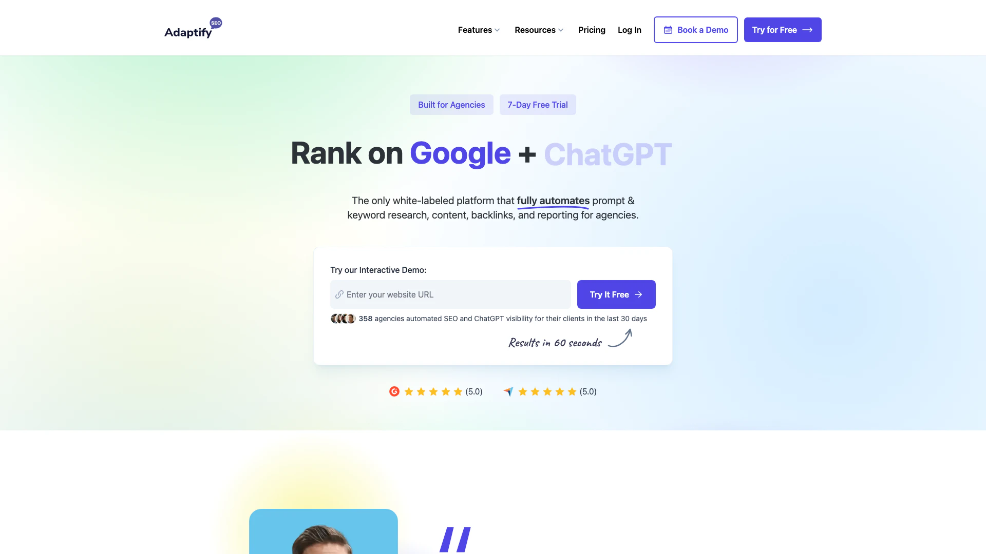 - 自動化されたSEOソリューション: Adaptifyは、コンテンツ作成、バックリンク獲得、キーワード戦略を含むSEOプロセス全体を自動化し、代理店の時間と労力を大幅に節約します。