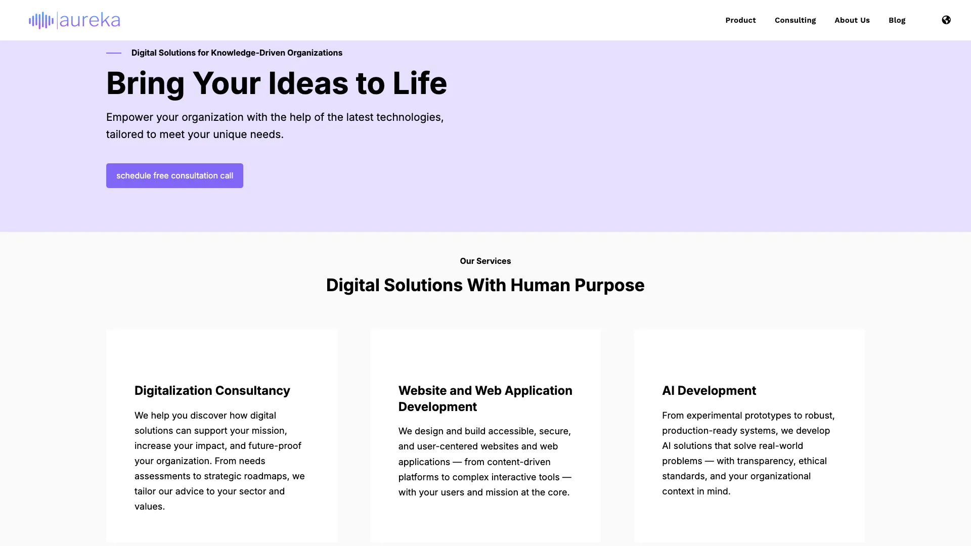 - 組織のニーズとAurekaaiがどのように支援できるかを話し合うために、無料相談の電話をスケジュールします。