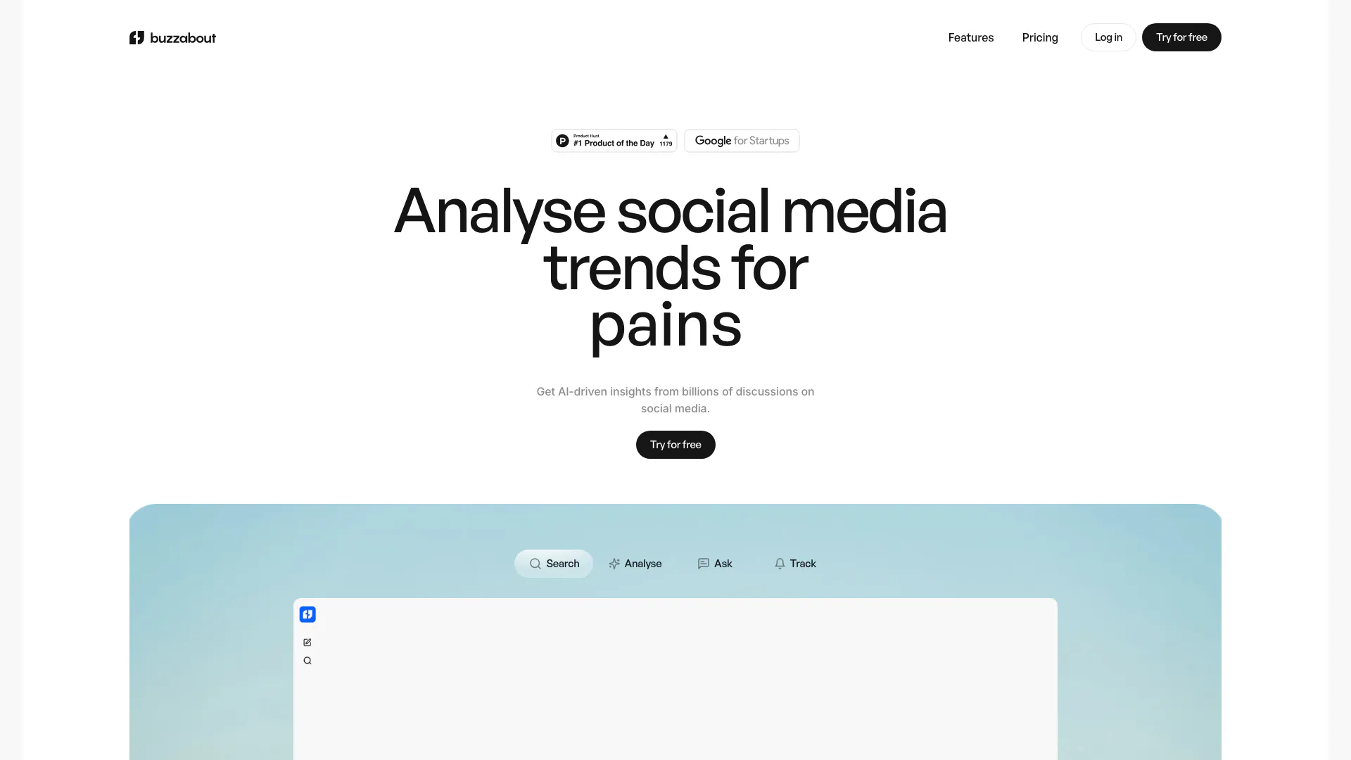 - AI駆動のインサイト: buzzaboutはAIを活用して数十億のソーシャルメディアの会話を分析し、データに基づいたインサイトを提供して、情報に基づいた意思決定を支援します。