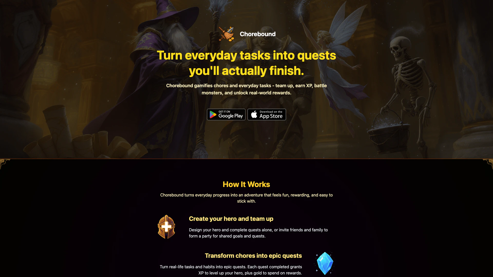 Choreboundは、日常のタスクをクエストに変えることで、家族の家事、ルームメイトの責任、個人の習慣を管理するのを助けるために設計された、ゲーミフィケーションされた習慣追跡および生産性アプリです。