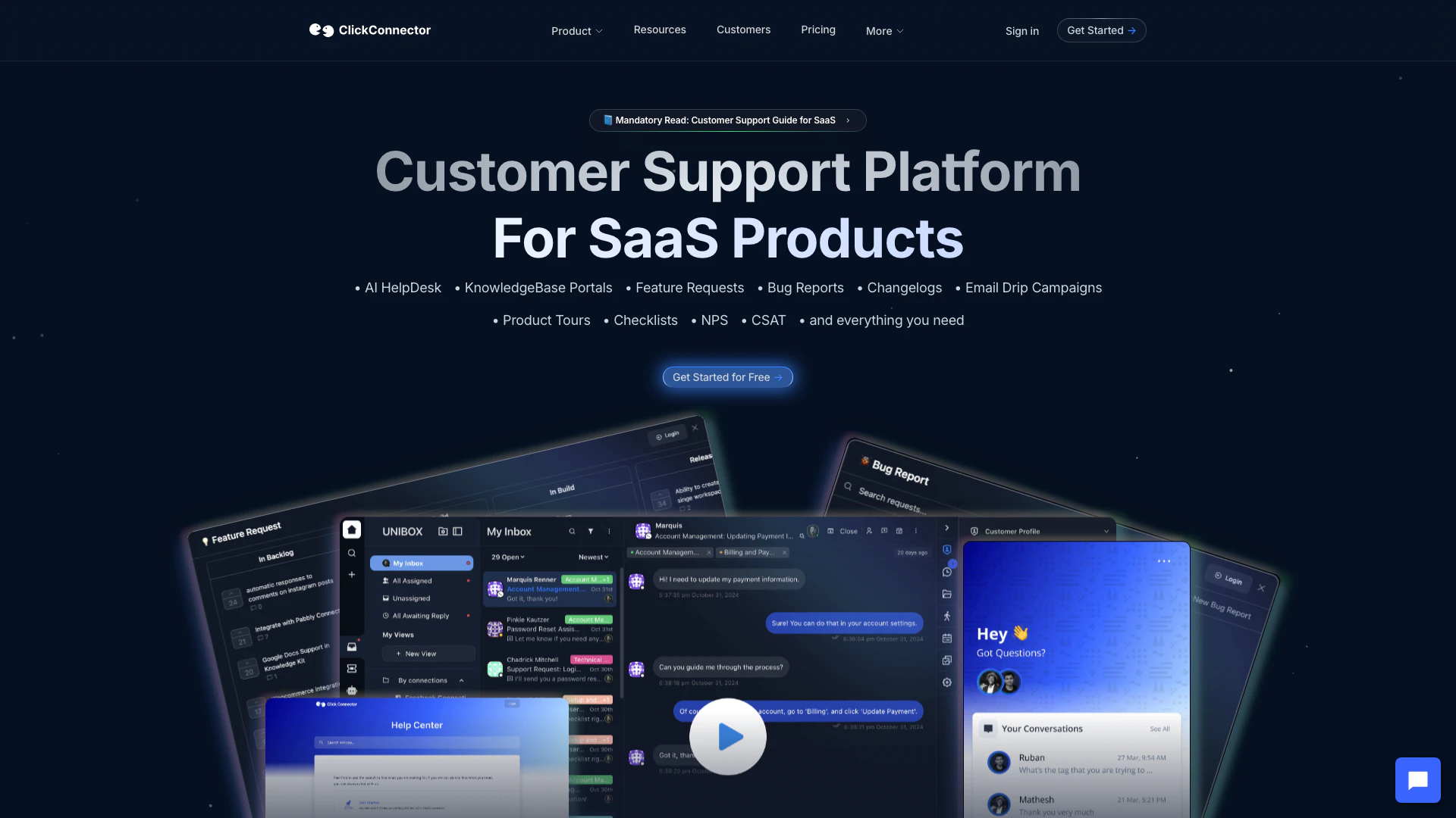 Clickconnectorは、SaaSビジネス向けに特別に設計された究極のAI駆動のサポートツールです。これには、HelpDesk、KnowledgeBaseポータル、機能リクエスト、バグ報告、変更ログ、メールドリップキャンペーン、製品ツアー、ネットプロモータースコア(NPS)調査、推薦状収集、チェックリストなど、顧客サポートプロセスを合理化する幅広い機能が含まれています。これらのツールを1つのプラットフォームに統合することで、Clickconnectorは顧客体験を向上させ、ビジネスと顧客間の効率的なコミュニケーションを促進することを目指しています。