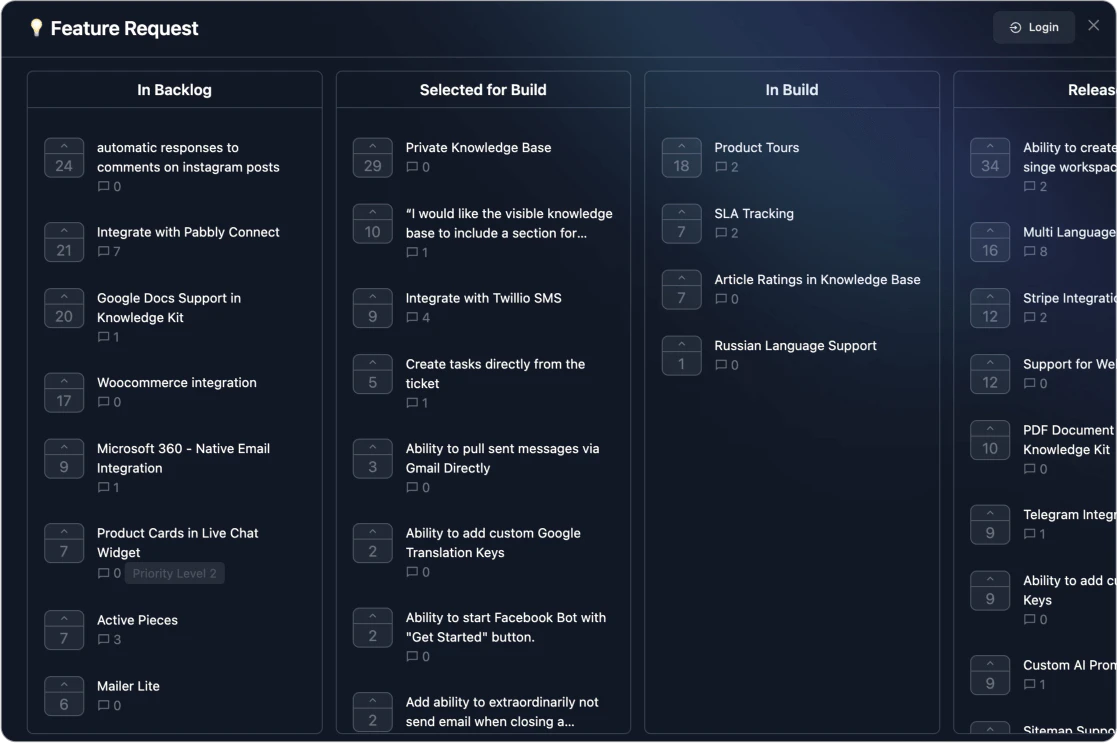 - 顧客フィードバックを効果的に収集するための機能リクエスト管理。