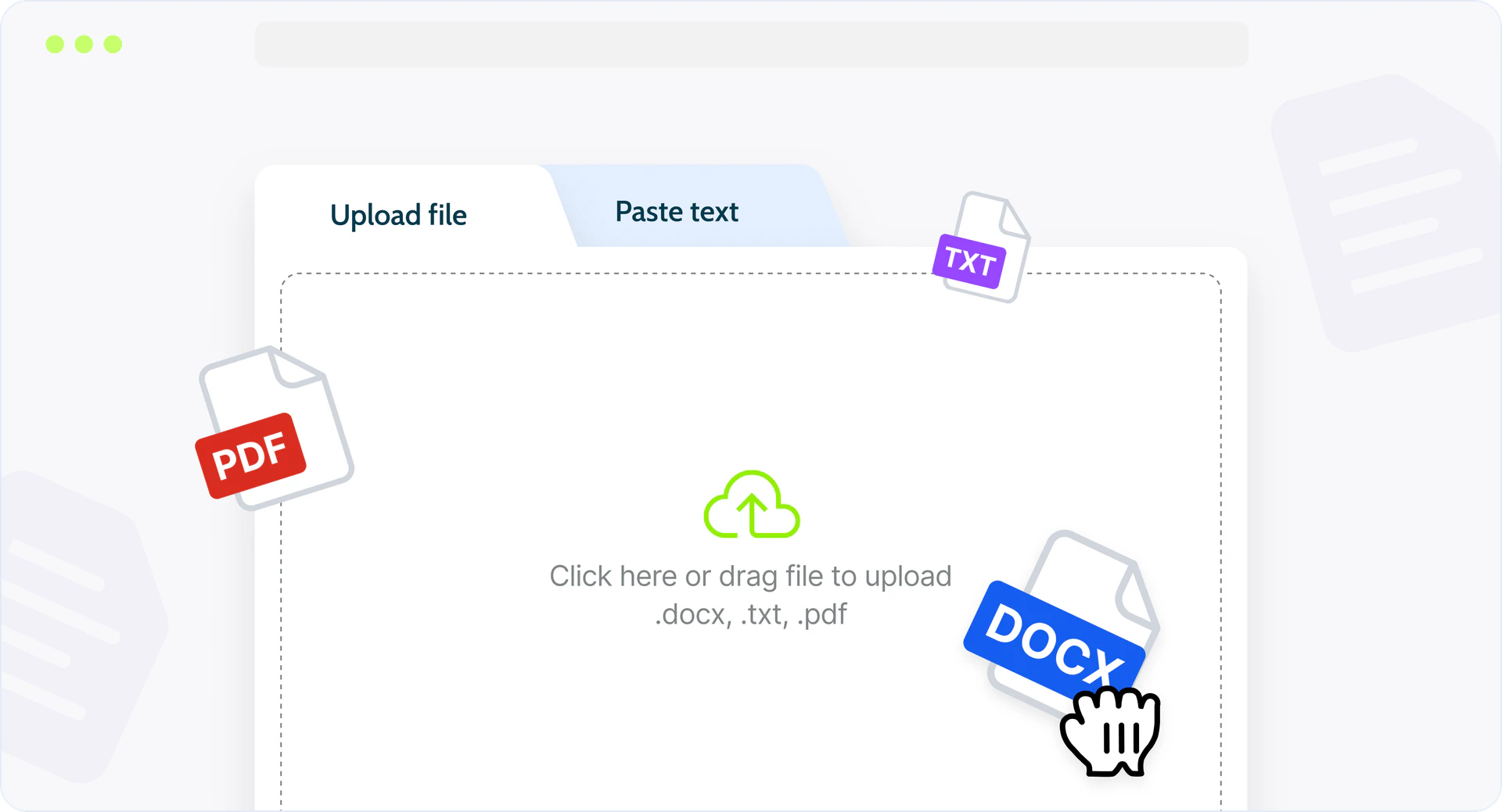 - サポートされている形式(PDF、DOCX、TXT)のいずれかで契約文書をアップロードします。