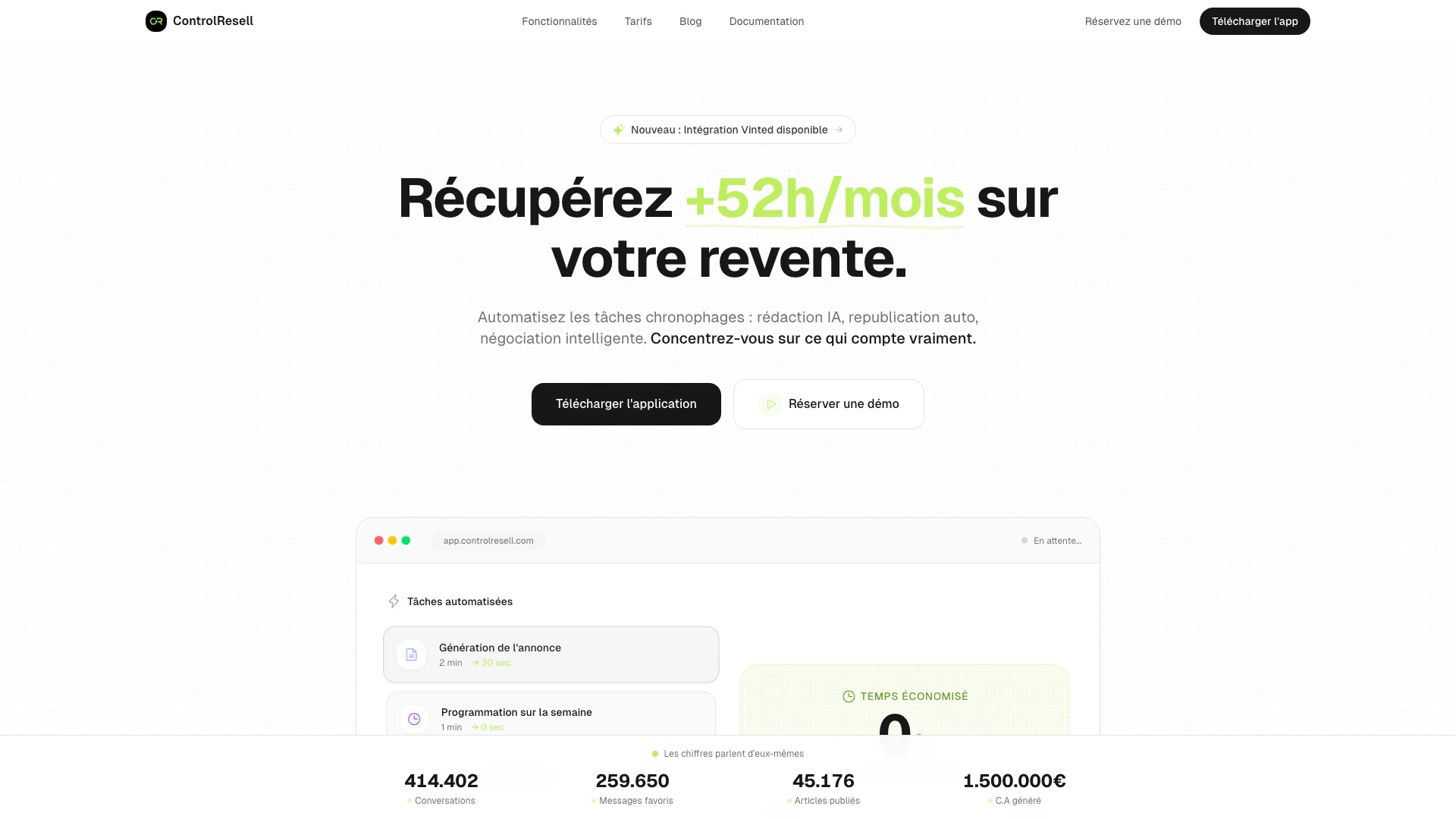 仕事と子供たちの間で、150個のアイテムを再投稿する時間がありません。ControlResellが夜にそれを代わりにやってくれます。何もせずに目覚めると、ビューと売上が増えています。