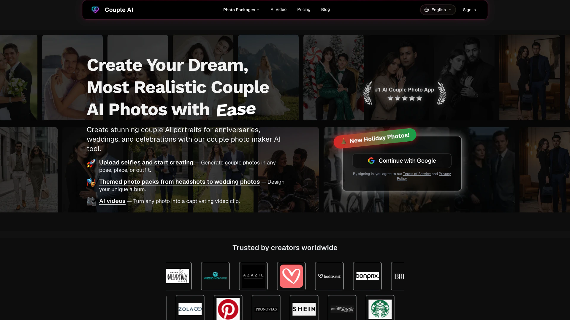 - 迅速な写真生成: Couple AIは、ユーザーが数分で素晴らしいカップルの写真を作成できるようにし、従来の撮影よりも大幅に速いです。