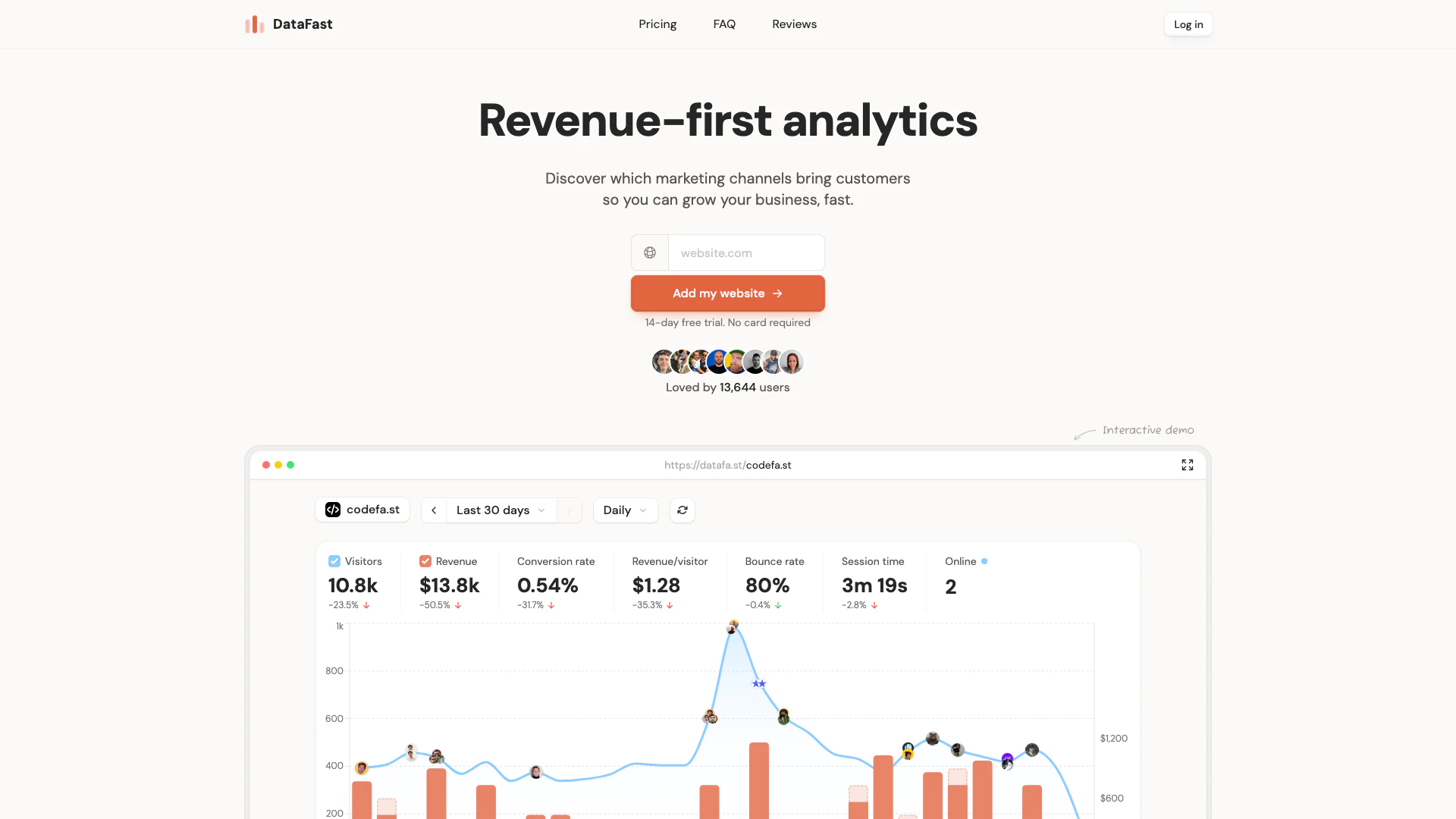 Datafaは、分析体験を向上させるための強力な機能を提供します: - ウェブ分析:成長に焦点を当てた洞察を得て、虚栄の指標の混乱を排除します。 - 収益帰属:どのマーケティングチャネルが支払い顧客を生み出すかを特定し、最も高いライフタイムバリュー(LTV)を持つ顧客セグメントを理解します。 - 目標とファネル:カスタム目標を設定し、訪問者の最初のクリックからコンバージョンまでの全旅程を追跡します。 - ライブ訪問者インテリジェンス:リアルタイムで訪問者を監視し、コンバージョンの可能性がある人々に関する洞察を得ます。 - アラートと統合:目標の達成について通知を受け取り、WordPressやGoogle Tag Managerなどの人気プラットフォームとシームレスに統合します。