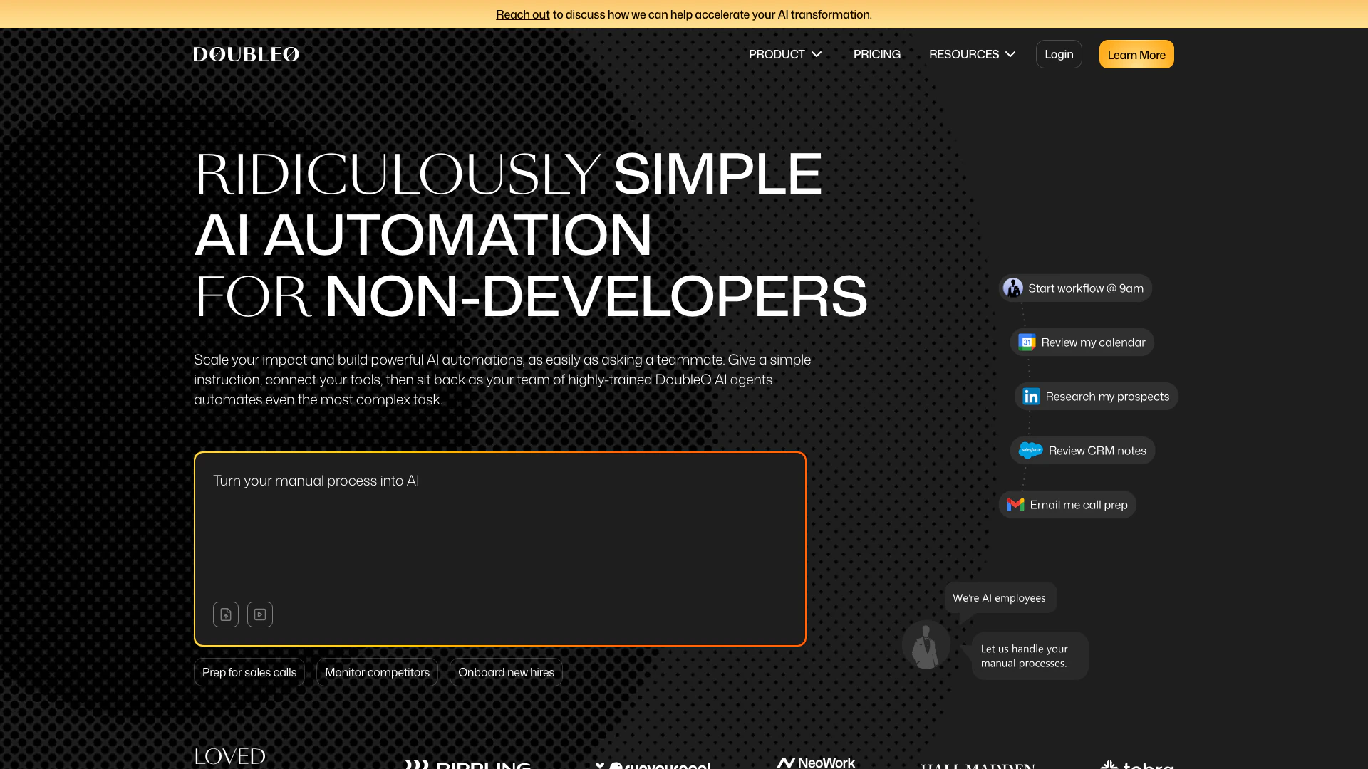 - ユーザーフレンドリーな自動化: Doubleoaiは、非開発者がAI自動化を作成できるシンプルなインターフェースを提供し、技術スキルのないユーザーにもアクセス可能です。