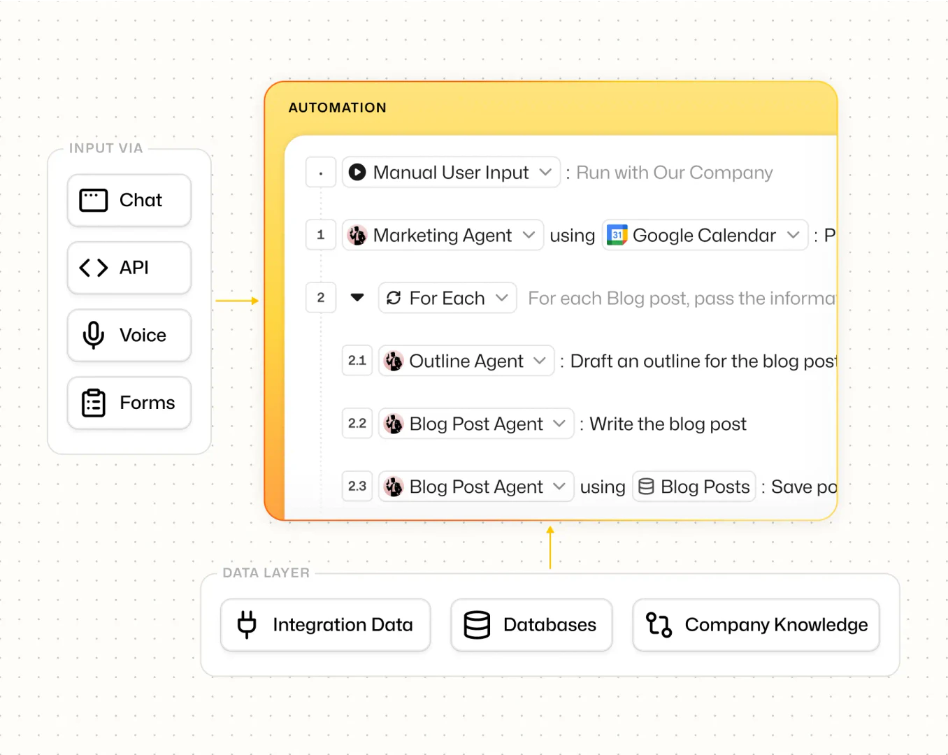 - 強力なAIエージェント: AIエージェントを利用して複雑なタスクを処理し、ユーザーがプロセスを効率的かつ効果的に自動化できるようにします。