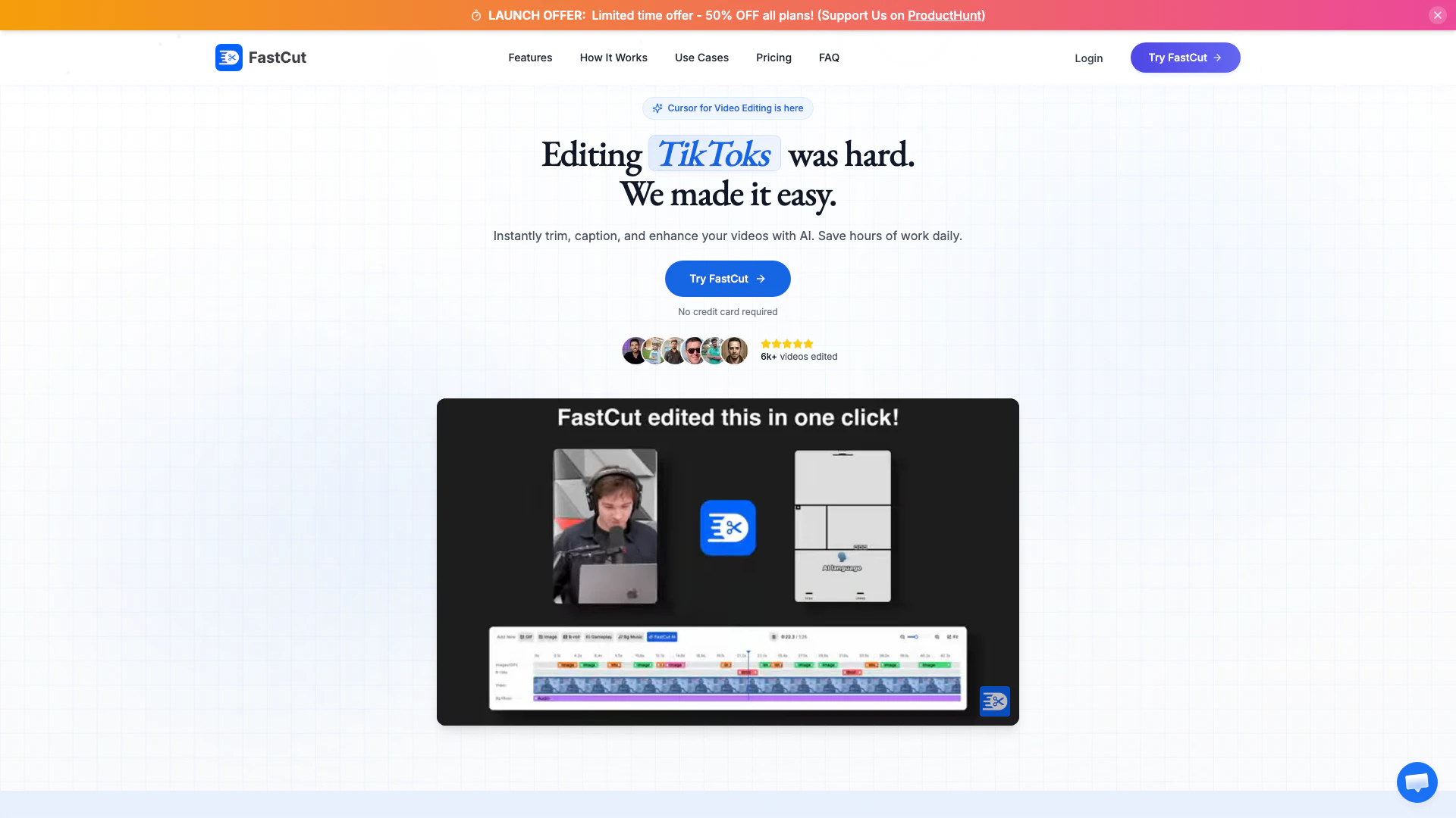 - マーケティングキャンペーン: FastCutAIを使用して、広告費用対効果(ROAS)を改善し、コンバージョンを促進する魅力的な動画広告を制作します。