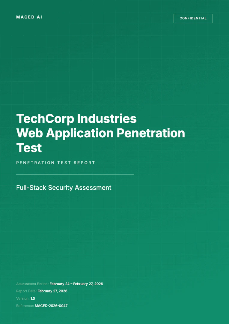 - 迅速な監査準備のペネトレーションテスト: Macedaiは、数週間ではなく数時間で監査準備が整ったペネトレーションテストを提供し、SOC 2およびISO 27001基準への準拠を確保します。