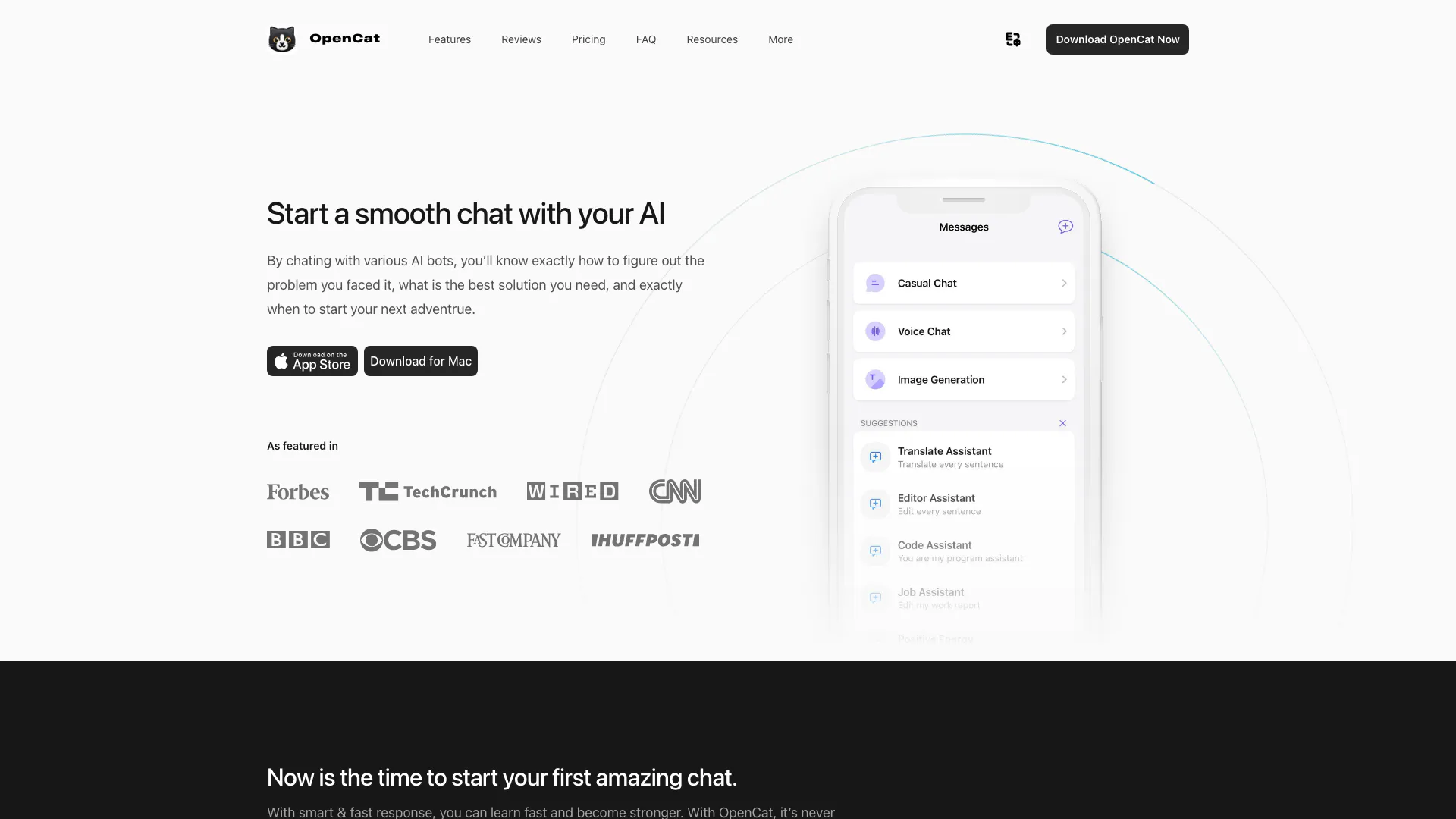 - 多様なコミュニケーション形式: OpenCatは音声チャット、テキストから画像への変換、画像チャット、翻訳をサポートし、ユーザーのインタラクションと多様性を向上させます。