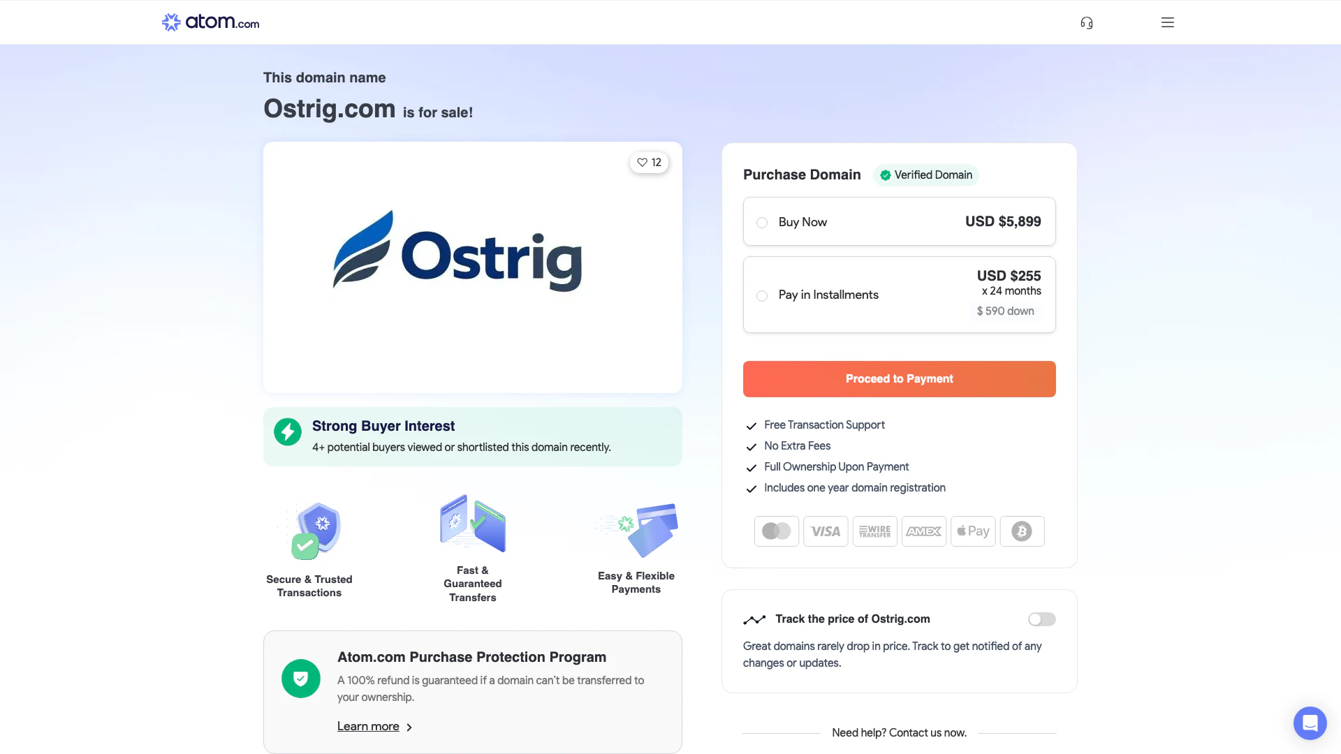 - 柔軟な支払いオプション: Ostrig.comは柔軟な支払いプランを提供しており、購入者は管理可能な月額支払いでドメインを購入できます。