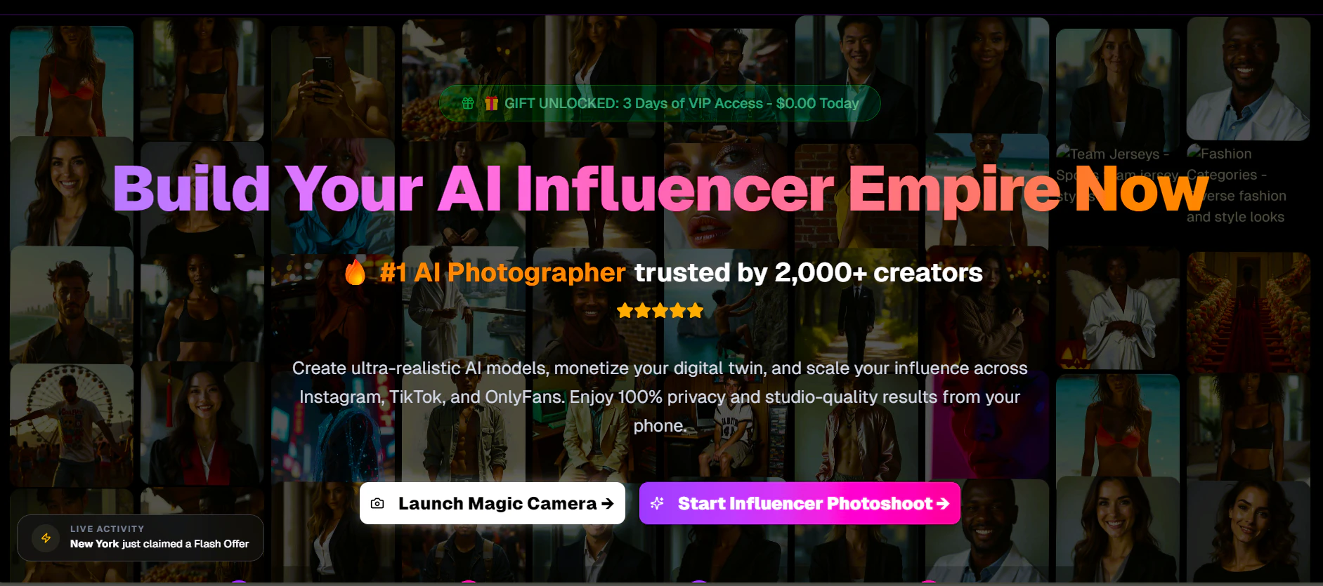 3日間のフルアクセス(VIPトライアル)、無制限のAI生成、4K品質とAPIアクセス、専任アカウントマネージャー、ホワイトラベルオプション、優先サポートおよびSLAが含まれています。