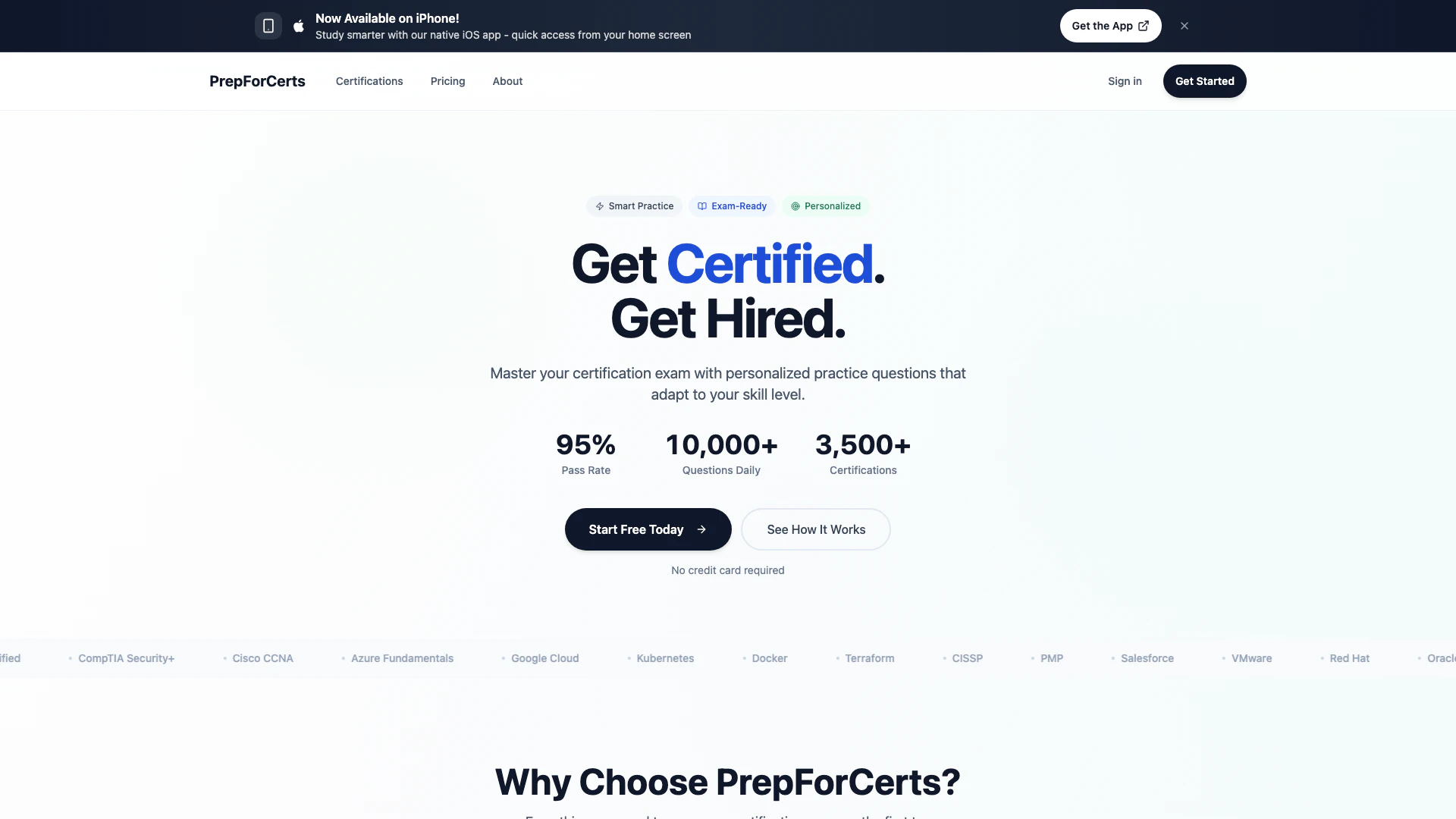 いいえ、PrepForCertsを試すのにクレジットカードは必要ありません。コミットメントなしで無料でプラットフォームを使用開始できます。