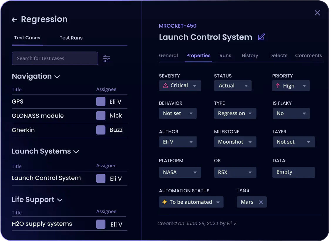 - 包括的なテスト管理: 単一のプラットフォーム内で手動および自動テストを作成、管理、実行します。