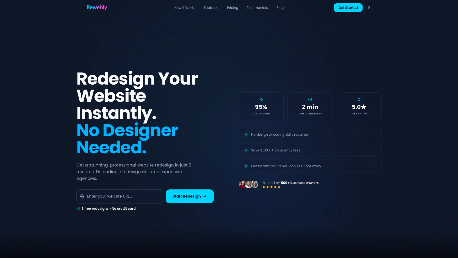 ウェブサイトの再設計に8,000ドルの見積もりを受けました。Reweblyは39ドルで2分でそれを実現しました。信じられませんでした!