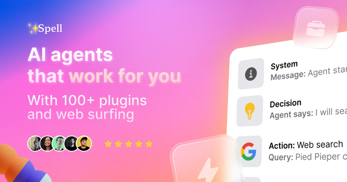 - 包括的なプラグインサポート: Spellは100以上のプラグインを提供し、エージェントの機能を強化し、さまざまなアプリケーションで役立ちます。