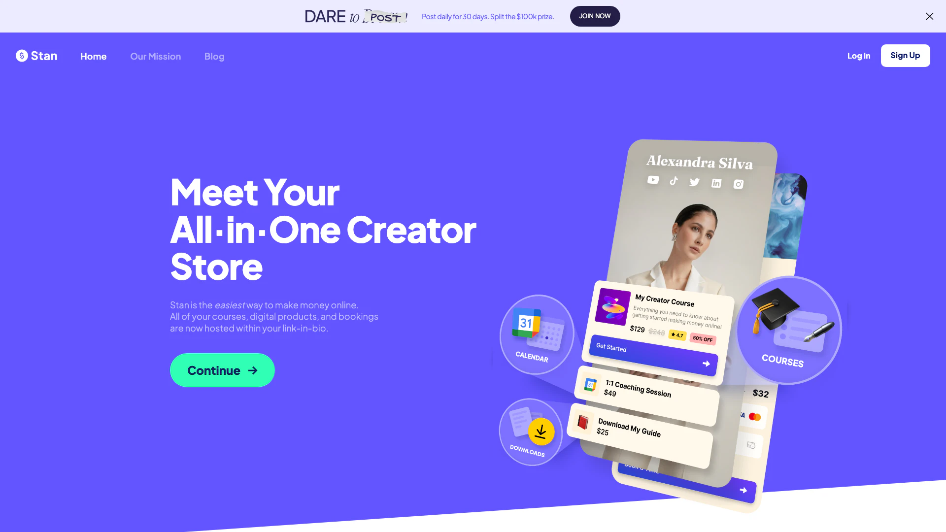 Stanは、コース、デジタル製品、予約をすべて一つの場所でホストできるオールインワンのクリエイター向けストアです。これにより、クリエイターはコンテンツを収益化しやすくなります。
