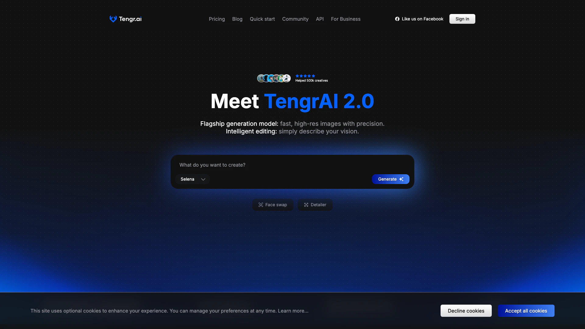 - 高解像度画像生成: Tengr.aiは、高速かつ高解像度の画像生成を提供し、ユーザーがニーズに合わせた素晴らしいビジュアルを作成できるようにします。