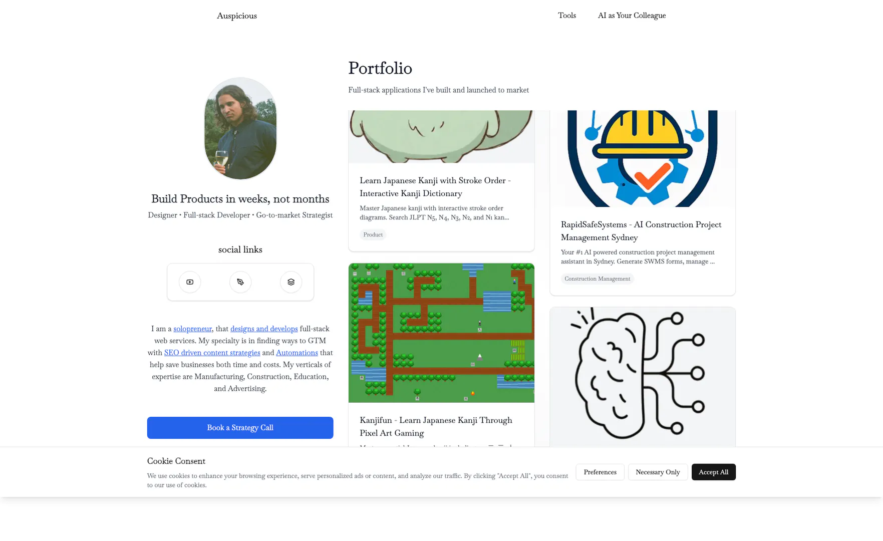 Theauspiciouscompanyは主にソロプレナー、中小企業、AI技術を業務に統合しようとする起業家を対象としています。製造、建設、教育、広告などの業界にサービスを提供し、プロセスを合理化し、生産性を向上させるためのカスタマイズされたソリューションを提供します。