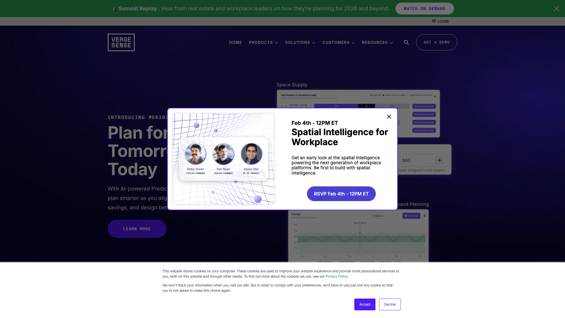 - AIによる予測計画: VergeSense MeridianはAIを利用して予測計画を提供し、組織がスペースを需要に合わせ、職場の効率を最適化するのを助けます。
