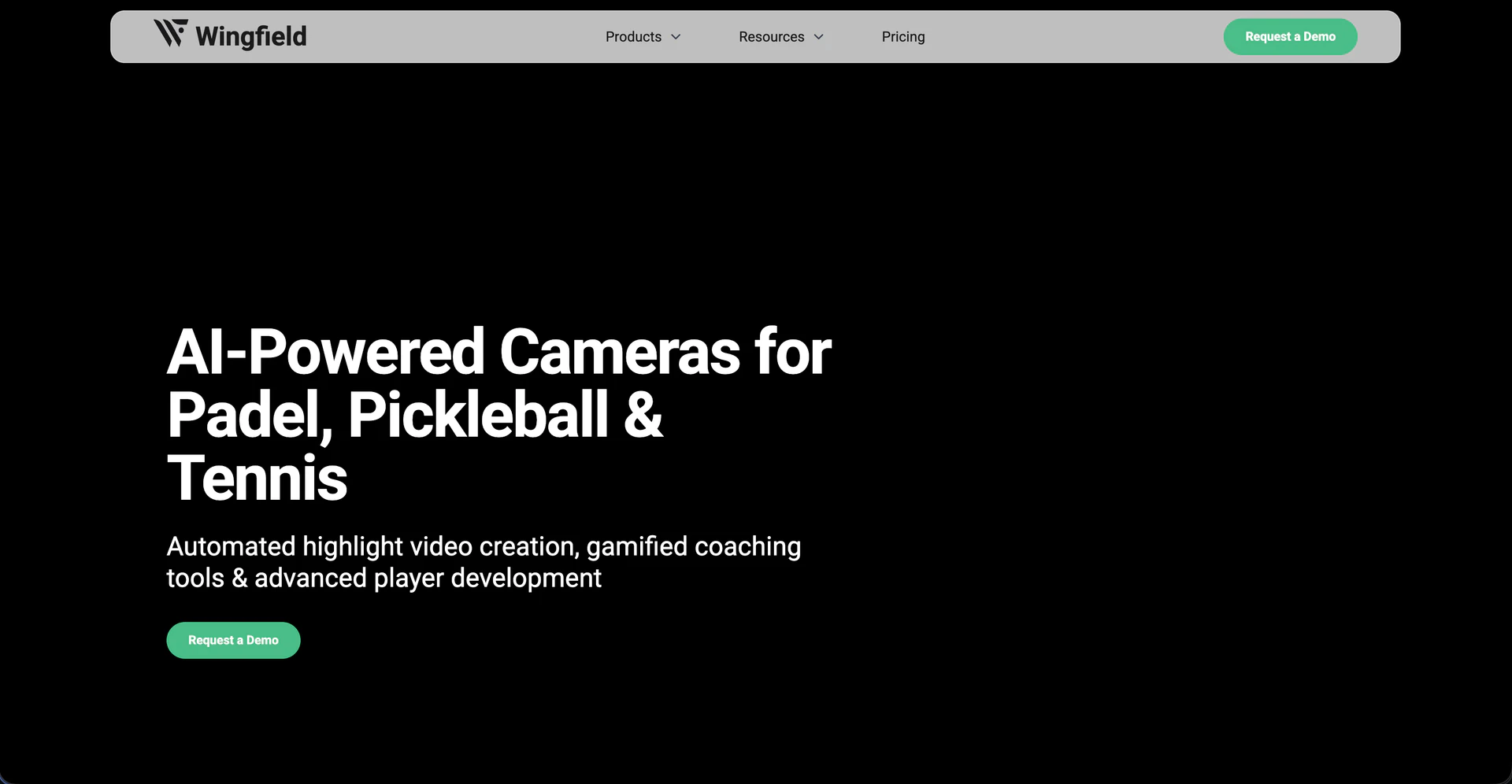 Wingfieldカメラは、自動ハイライトビデオ作成、マッチ分析、ビデオフィードバック、ライブストリーミング、トラッキング機能を提供しており、すべてラケットスポーツ専用に設計されています。