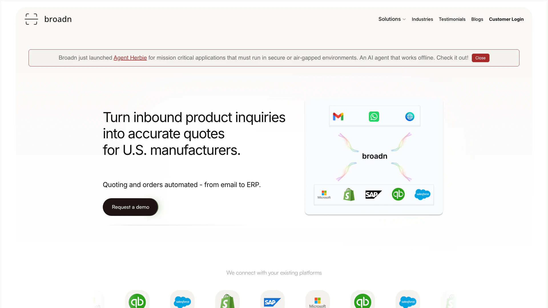- 종합 자동화: Broadn은 RFQ를 분석하고 인용을 보내는 전체 인용 프로세스를 자동화하여 영업 팀이 더 높은 가치의 작업에 집중할 수 있도록 합니다.