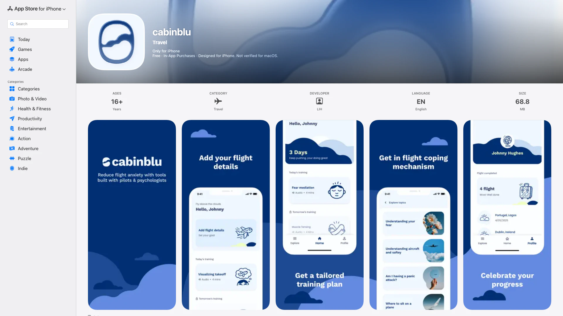 - 개인화된 접근: cabinblu는 항공 여행을 위해 독점적으로 설계되어 불안한 비행자가 직면한 고유한 문제를 해결하는 도구와 통찰력을 제공합니다.