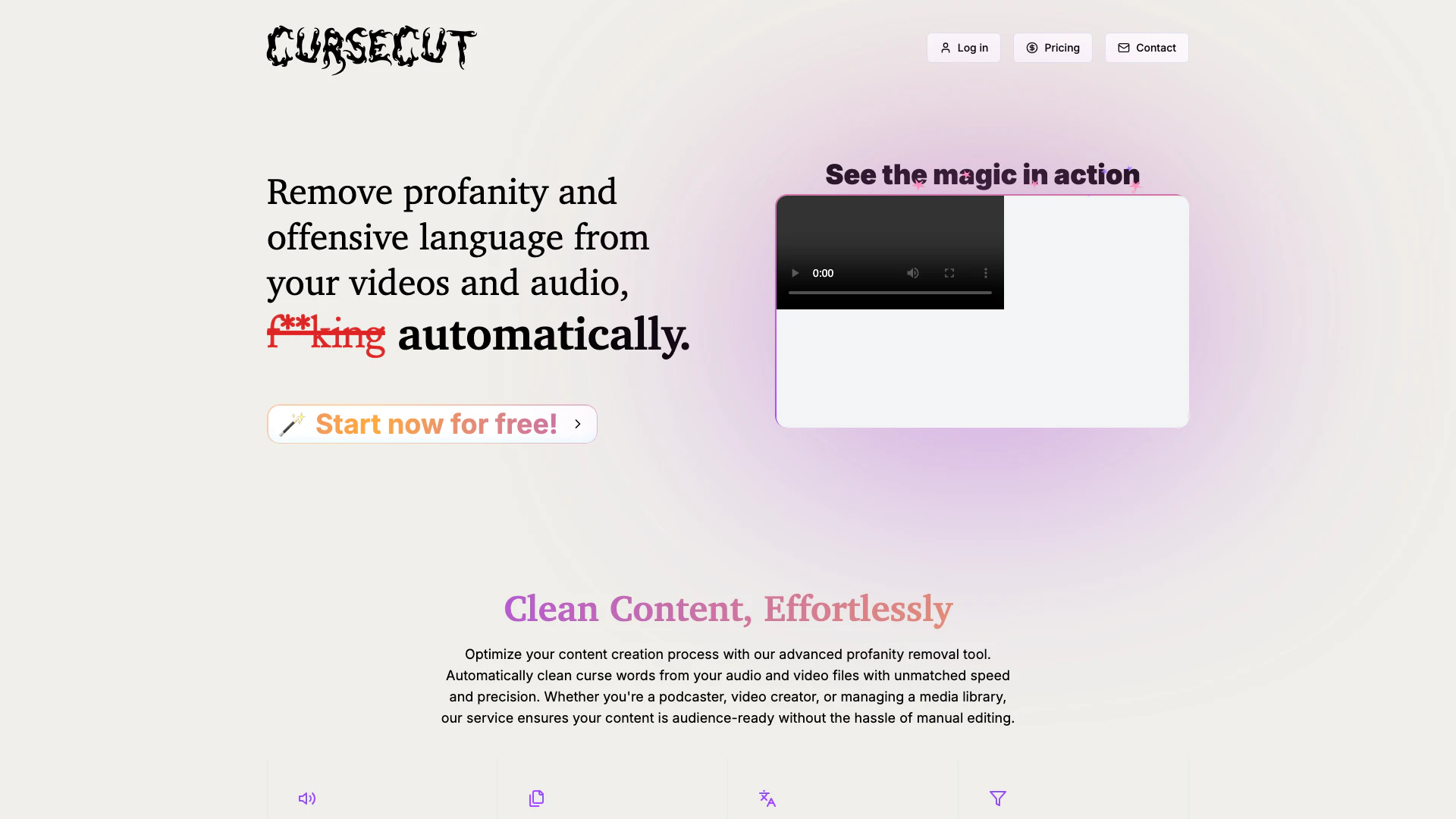 - 효율적인 욕설 제거: CurseCut은 오디오 및 비디오에서 욕설을 자동으로 제거하여 수동 편집 없이 깨끗한 콘텐츠를 보장합니다.