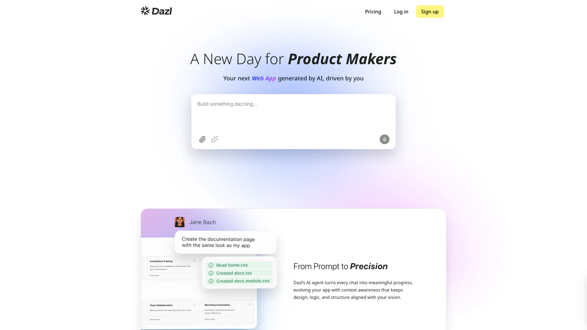 다즐은 제품 제작자를 위해 설계된 혁신적인 AI 기반 도구로, 사용자가 쉽게 애플리케이션을 구축할 수 있도록 돕습니다. 사용자의 프롬프트를 실행 가능한 기능으로 변환하여, 제작자가 AI 에이전트와의 의미 있는 대화를 통해 앱을 발전시킬 수 있게 합니다. 다즐은 맥락 인식을 강조하여 디자인, 논리 및 구조가 사용자의 비전과 일치하도록 보장하며, 궁극적으로 사용자가 진정으로 눈부신 것을 창조하는 데 도움을 줍니다.