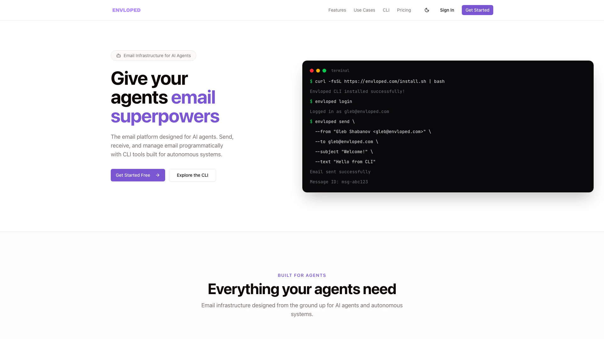 - 에이전트 우선 설계: 자율 시스템을 위해 특별히 구축된 Envloped는 AI 에이전트를 위한 이메일 관리를 향상시키는 에이전트 우선 설계를 제공합니다.