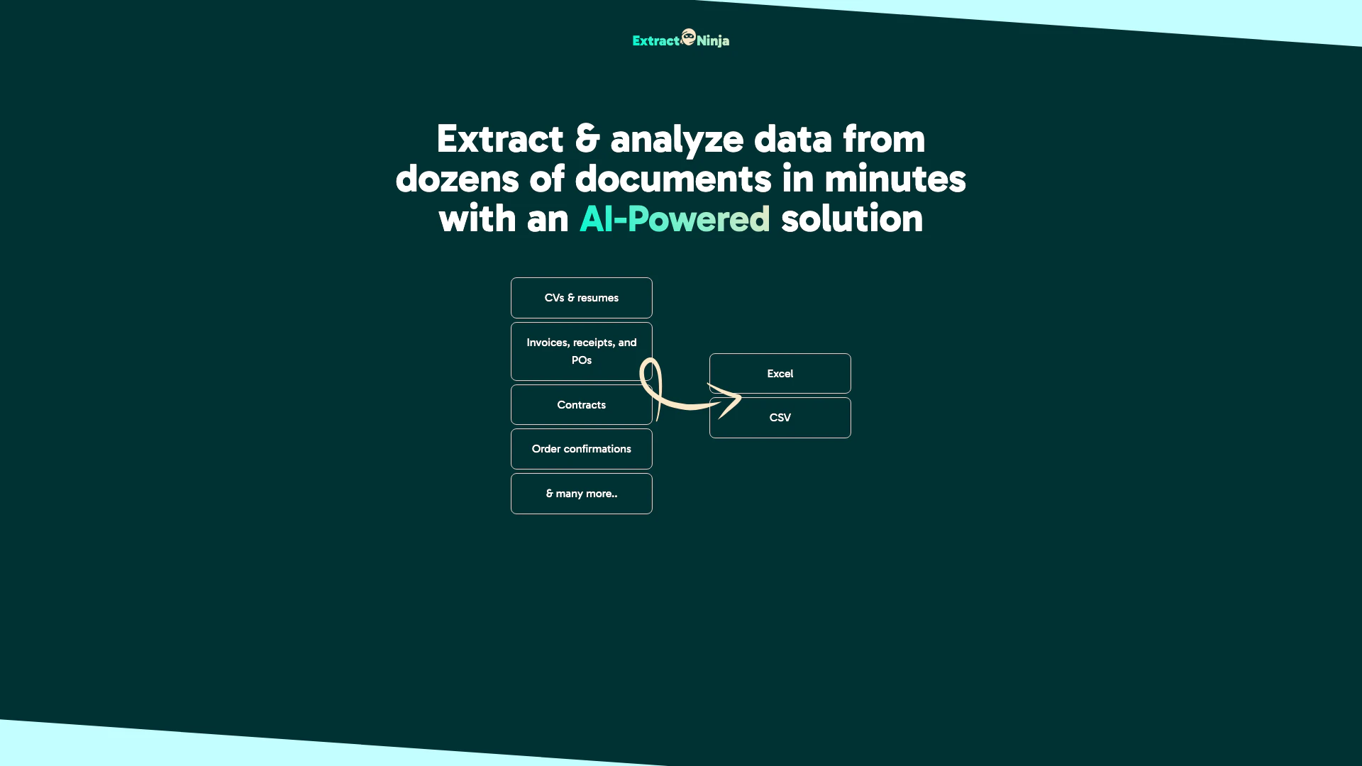 - AI 기반 데이터 추출: Extractninja는 AI 기술을 활용하여 다양한 문서에서 데이터를 신속하게 추출하고 분석하여 수작업을 크게 줄입니다.
