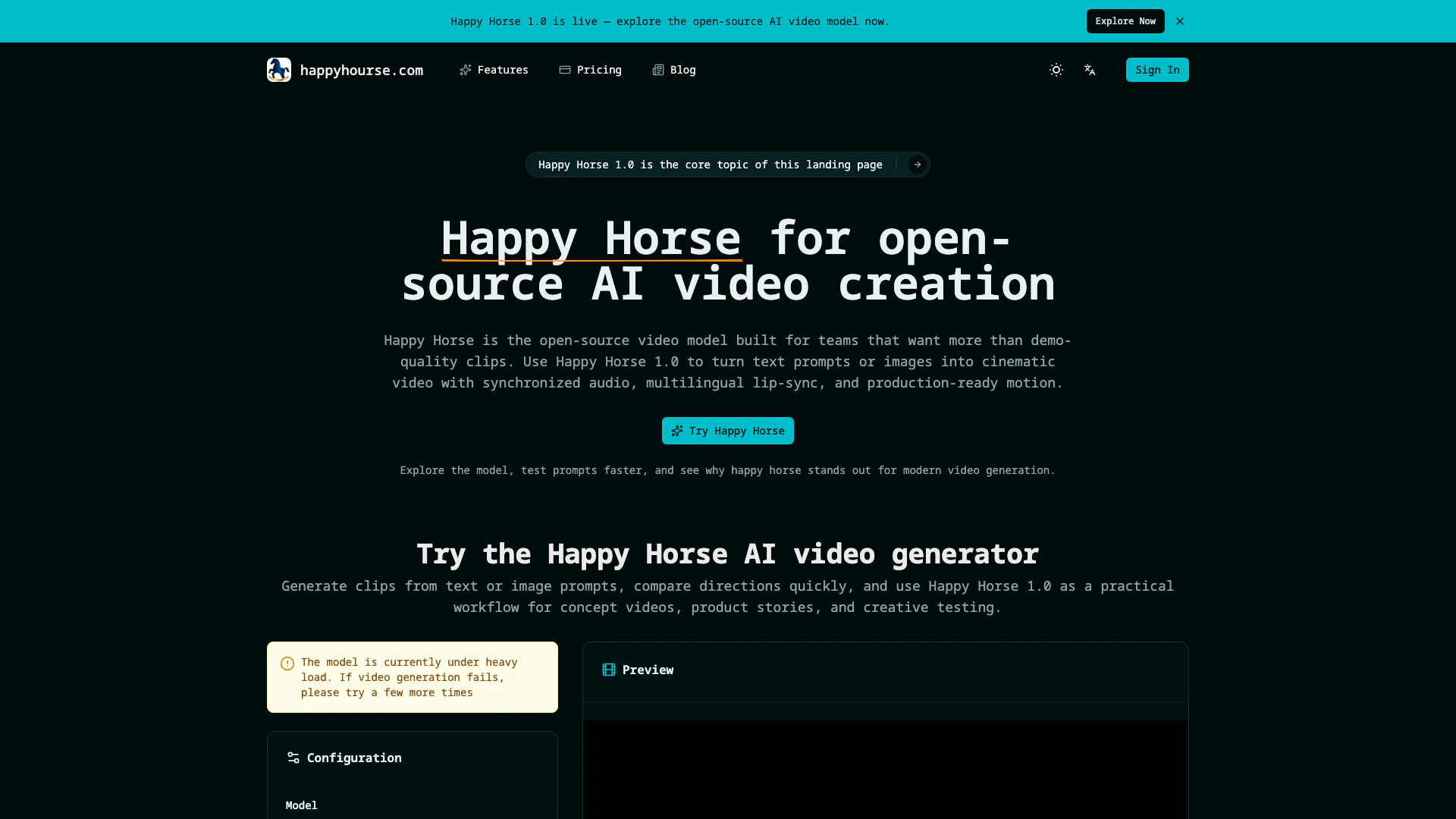 - 오픈 소스 접근성: Happy Horse는 오픈 소스 AI 비디오 모델로, 사용자가 사용자 정의 및 유연성을 위해 소스 코드를 액세스하고 수정할 수 있습니다.