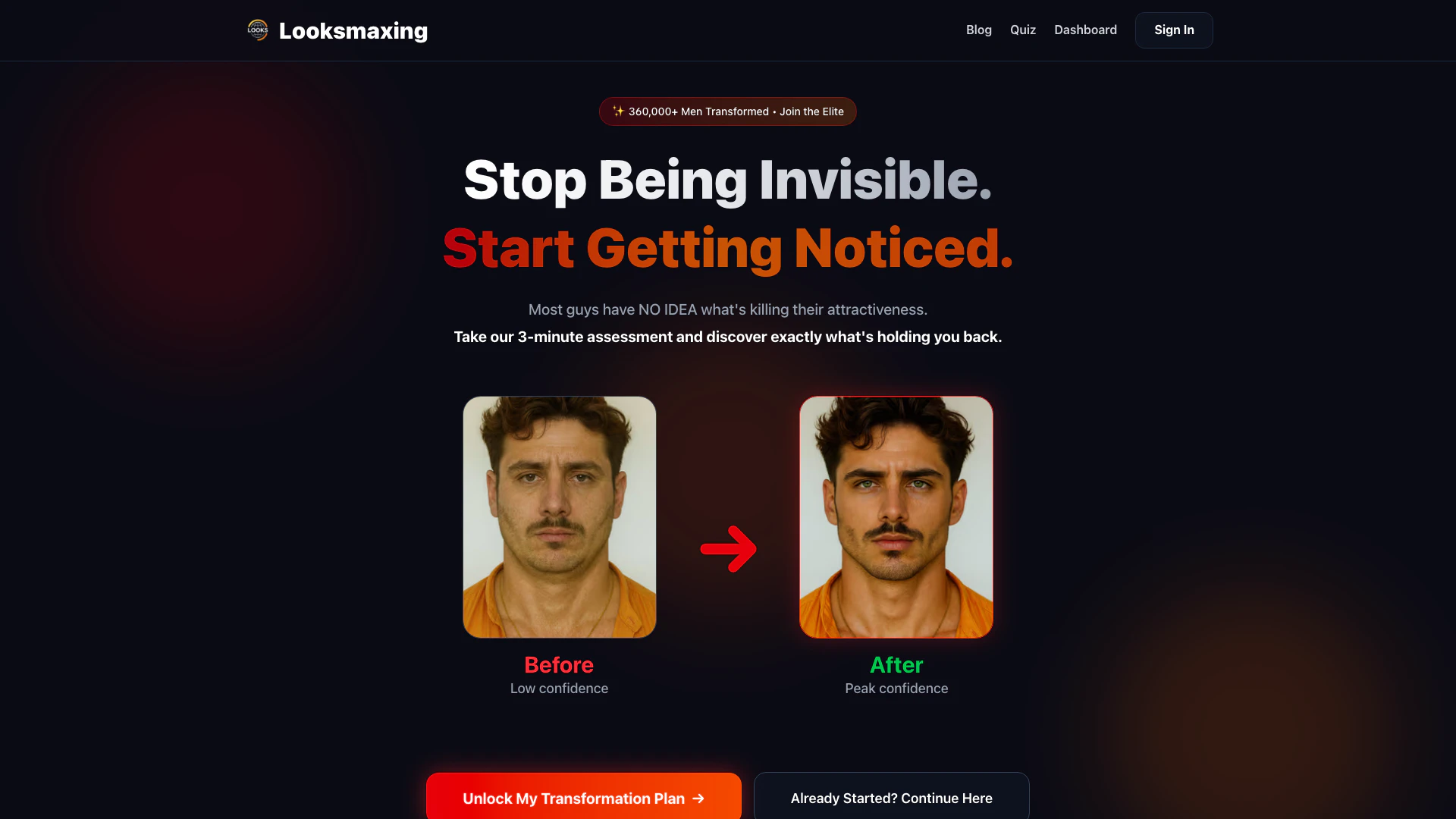 룩스맥싱은 남성들이 매력을 향상하고 자신감을 높이기 위해 설계된 혁신적인 온라인 플랫폼입니다. 360,000명 이상의 사용자를 보유한 룩스맥싱은 무료로 개인화된 매력 점수 분석과 과학에 기반한 개선 계획을 제공합니다. 이 도구는 사용자가 단 3분 만에 매력을 향상시킬 주요 영역을 신속하게 식별할 수 있도록 하여, 신체 외모와 전반적인 자존감을 높이고자 하는 이들에게 접근 가능하고 효과적인 솔루션을 제공합니다.