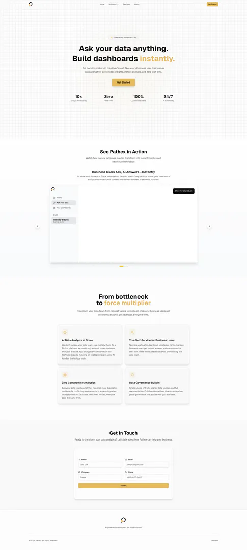 - 즉각적인 데이터 통찰력: Pathex는 사용자가 데이터 질문을 하고 즉각적인 답변을 받을 수 있도록 하여 데이터 팀의 응답 대기 시간을 없앱니다.