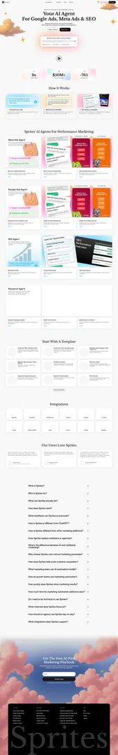 Sprites는 Google Ads, Meta Ads 및 SEO 워크플로우를 생성, 관리 및 최적화하는 데 도움을 주는 성과 마케팅용 에이전틱 AI입니다.