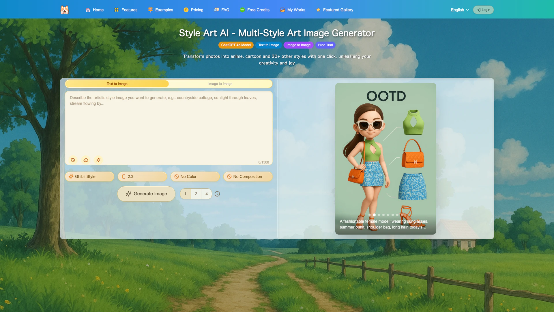 스타일아르타이는 고급 ChatGPT 4o 모델을 활용하여 사용자가 텍스트-이미지 및 이미지-이미지 생성을 통해 멋진 이미지를 만들 수 있도록 하는 혁신적인 AI 기반 도구입니다. 사전 기술이 필요 없이, 스타일아르타이는 사용자가 애니메이션, 만화 등 다양한 예술적 스타일로 작품을 쉽게 사용자화할 수 있게 해줍니다. 이 도구는 창의력을 발휘할 수 있도록 설계되어, 누구나 몇 번의 클릭으로 아름답고 독특한 이미지를 생성할 수 있도록 합니다.