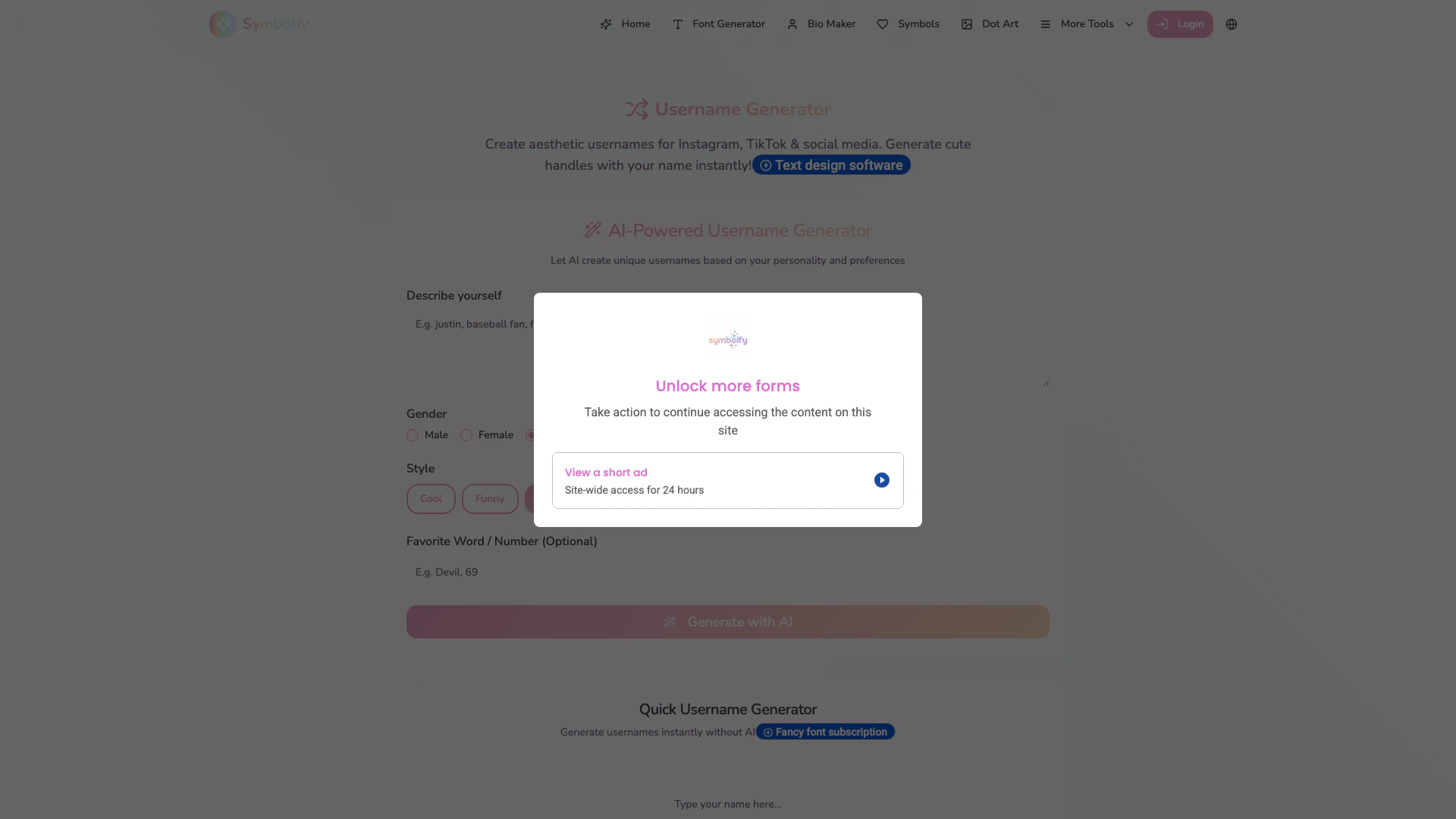 - https://symbolfy.com/username-generator 웹사이트를 방문하세요.