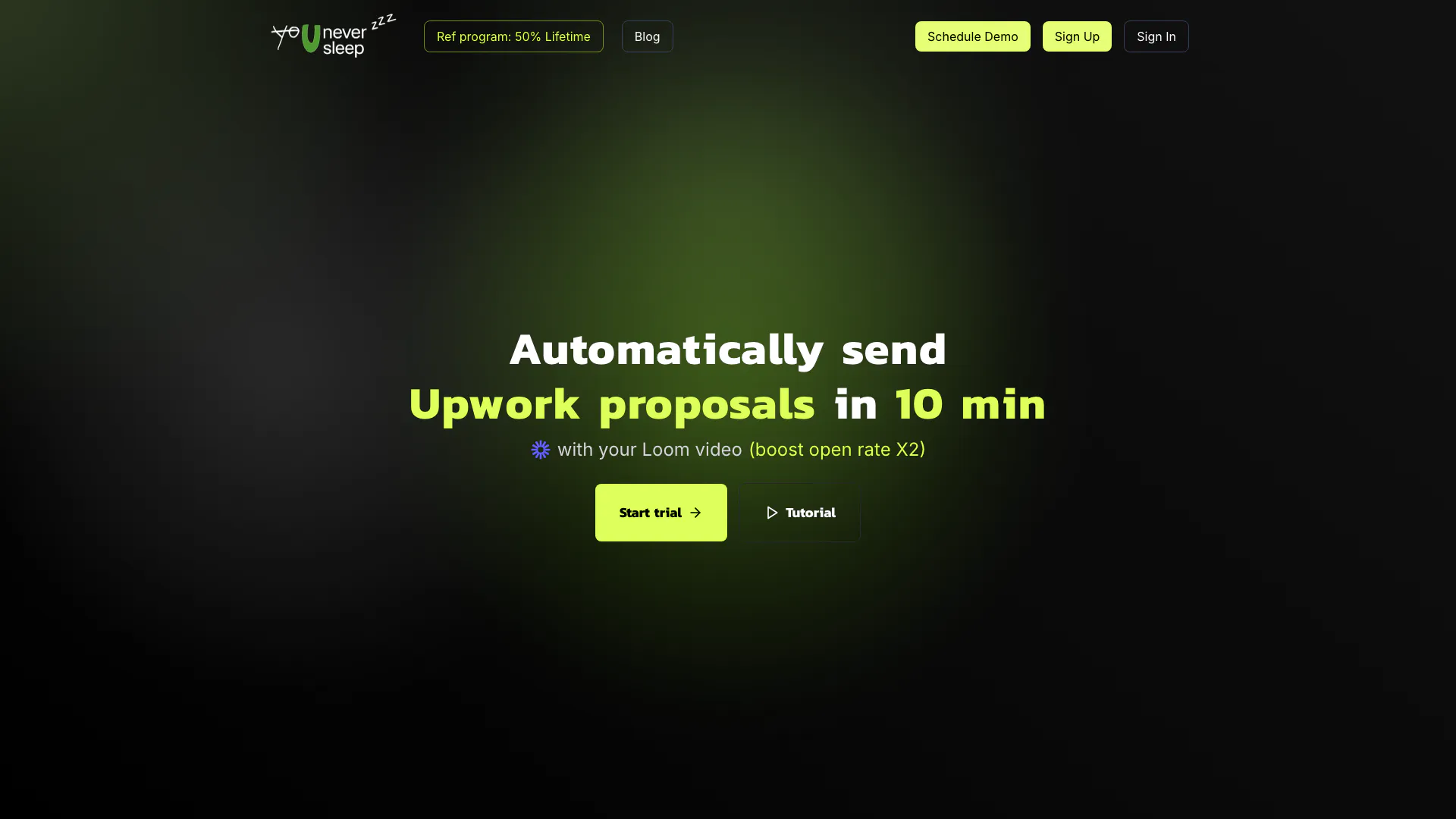 Uneversleep은 Upwork 제안서를 보내는 과정을 간소화하기 위해 설계된 혁신적인 도구입니다. Loom 비디오를 사용하여 개인화된 제안서를 단 10분 만에 자동으로 생성하고 발송할 수 있는 기능을 갖춘 Uneversleep은 잠재 고객에게 눈에 띌 수 있는 기회를 크게 향상시킵니다. 이 도구는 50% 이상의 놀라운 오픈율을 자랑하여 혼잡한 시장에서 제안서가 돋보이도록 보장합니다. AI 기술을 활용하여 Uneversleep은 프리랜서와 에이전시가 Upwork 경험을 최적화하도록 도와주며, 일자리 기회를 확보하는 데 더 쉽게 만들어 줍니다.