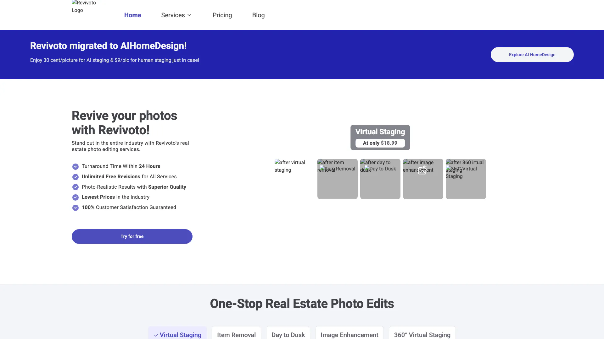 사진당 단 30센트로 AI 스테이징을 즐기세요.
