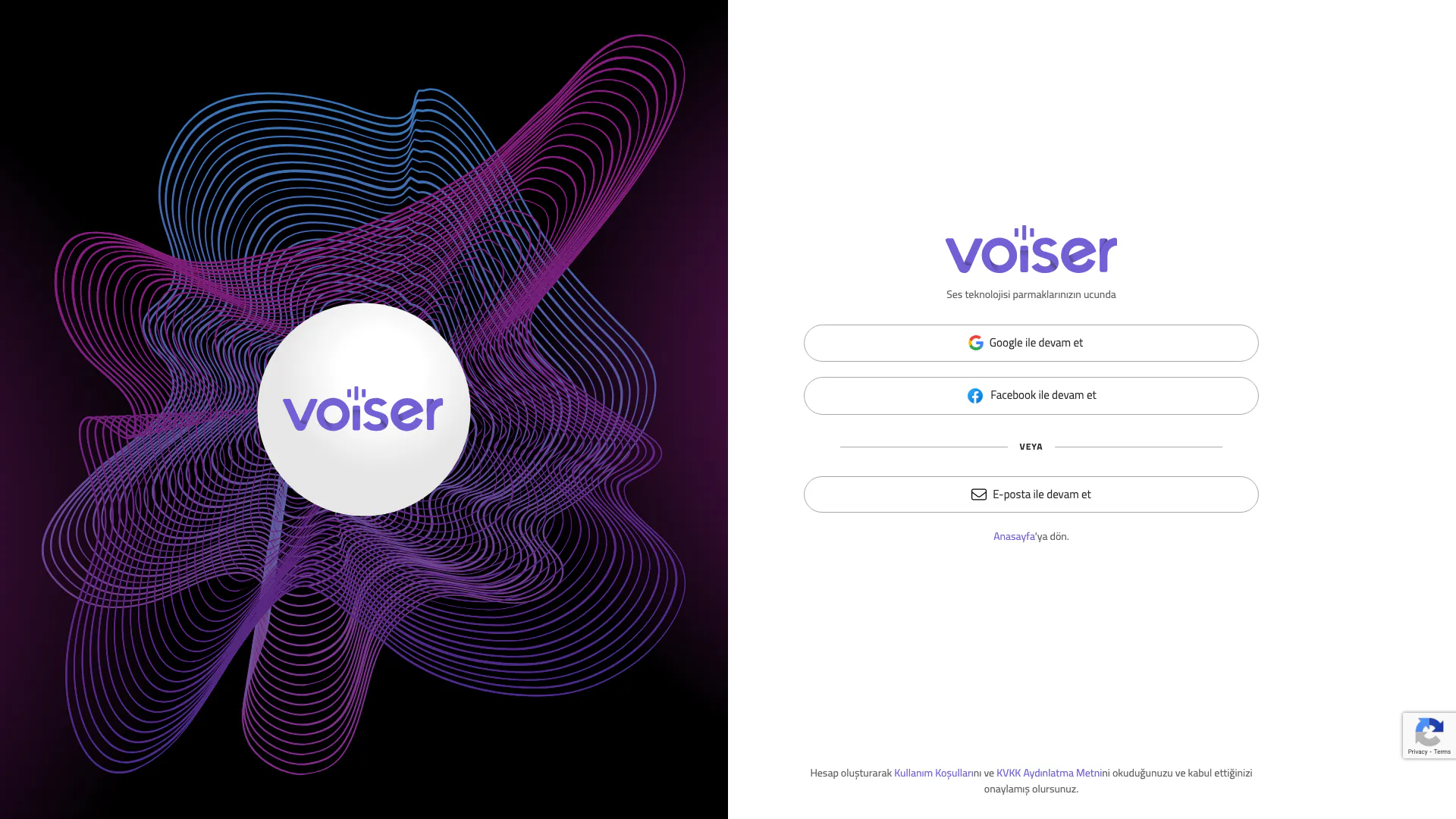 Voiser를 사용하려면 Google, Facebook 또는 이메일로 계정을 생성해야 합니다. 등록 후 로그인하여 음성 변환 또는 필사 서비스에 접근할 수 있습니다.