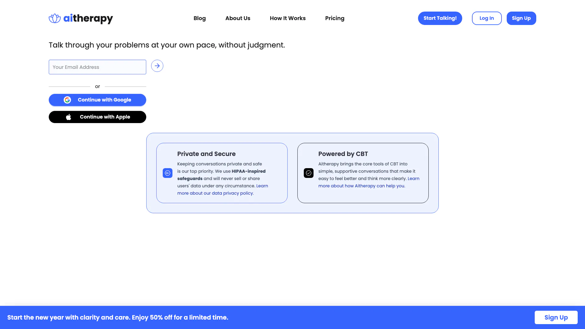 - Conversas Privadas e Seguras: Aitherapy prioriza a privacidade do usuário, empregando salvaguardas inspiradas na HIPAA para garantir que as conversas permaneçam confidenciais e seguras.