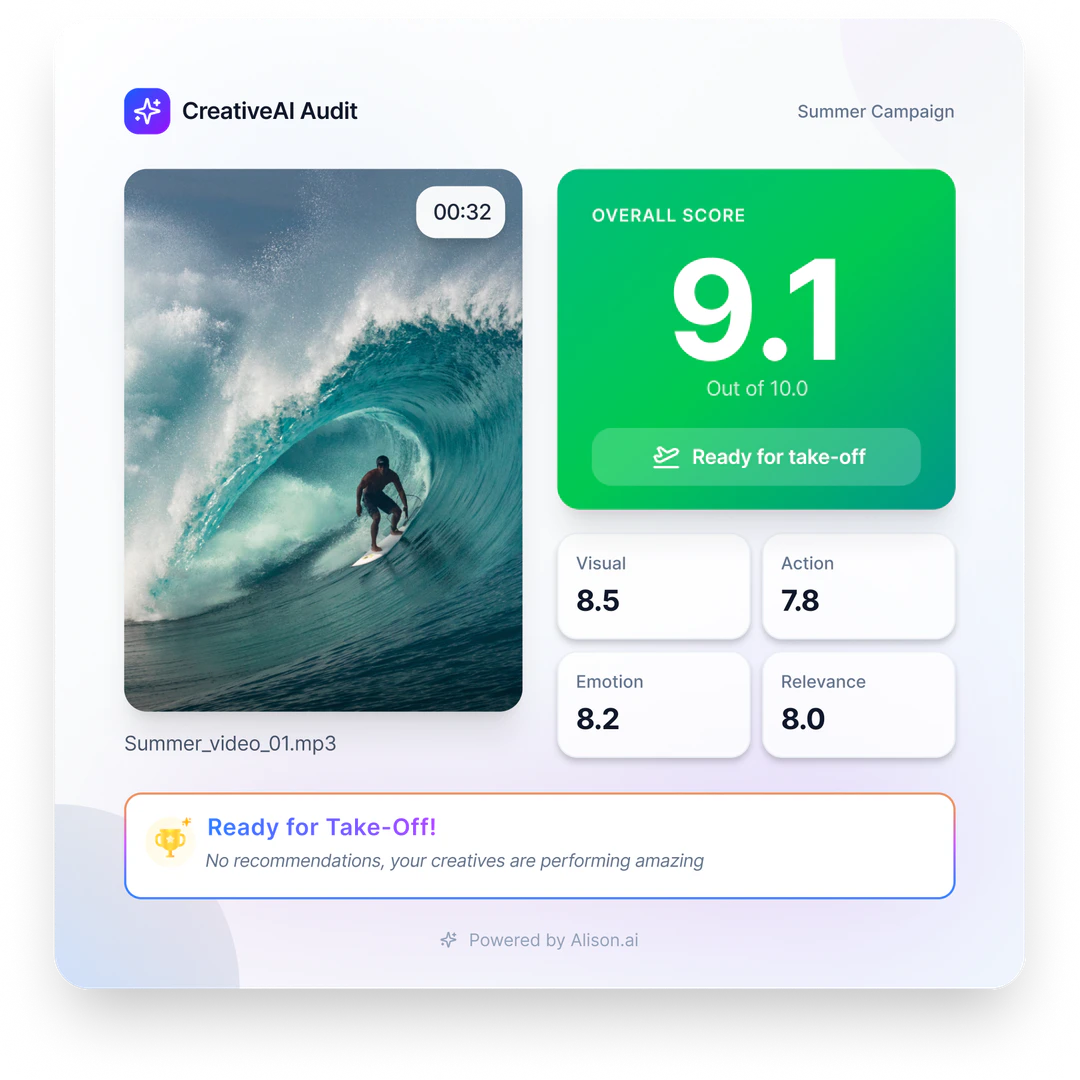- Otimização de Campanhas Publicitárias: Os profissionais de marketing podem usar o Alisonai para validar e otimizar anúncios em vídeo antes de lançá-los, garantindo que atendam aos padrões de desempenho.