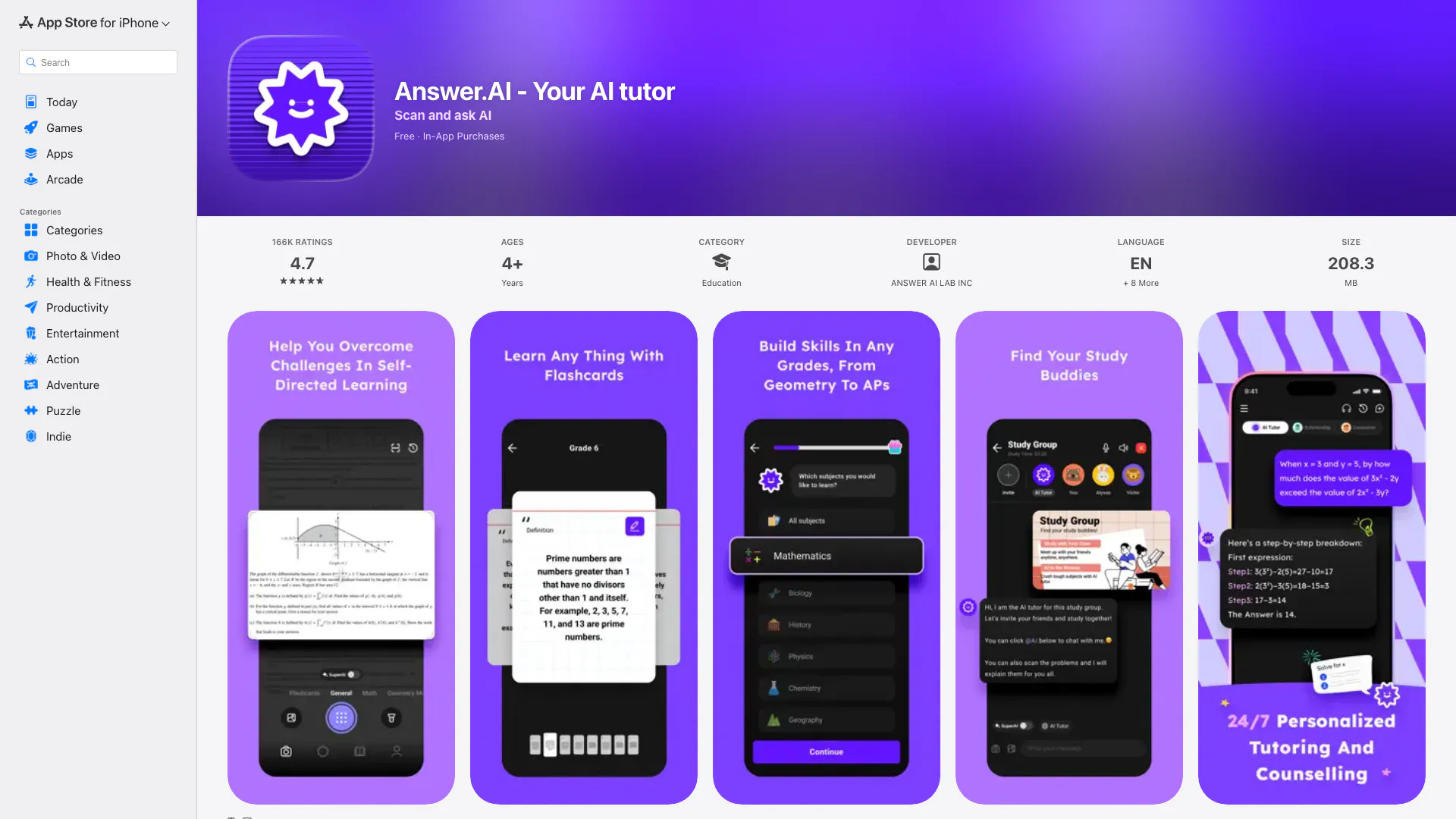 Para as informações de preços mais recentes, visite este link: https://apps.apple.com/us/app/answer-ai-your-ai-tutor/id6446047896
