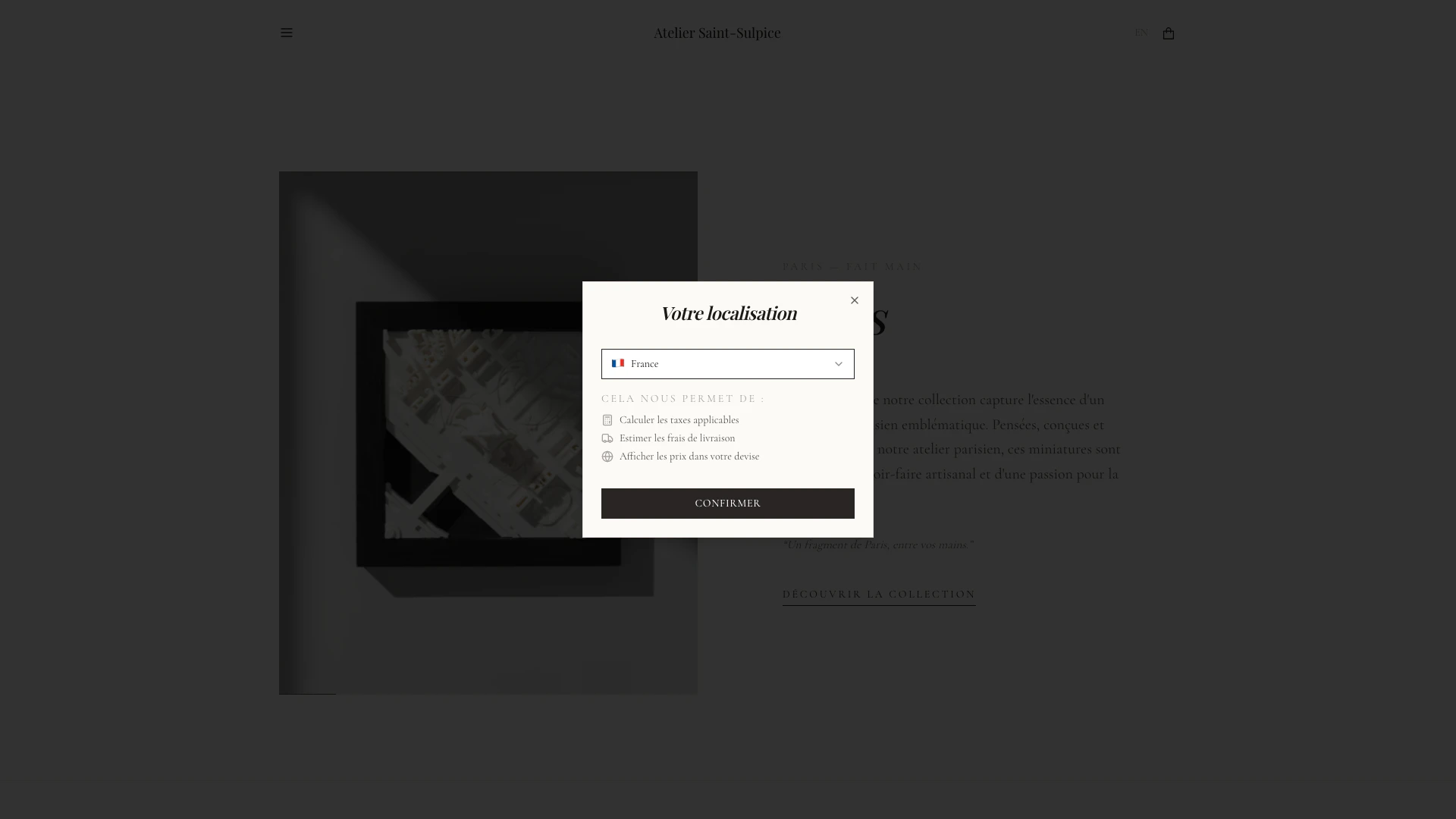 O Atelier Saint-Sulpice é uma oficina parisiense especializada em miniaturas elegantes que capturam a essência de marcos icônicos de Paris. Cada peça é meticulosamente projetada, elaborada e produzida localmente, exibindo expertise artesanal e uma paixão pela Cidade Luz. As miniaturas são emolduradas em madeira e feitas de PLA bio-sourced, um material sustentável, permitindo que você leve para casa um fragmento de Paris com sofisticação e estilo.