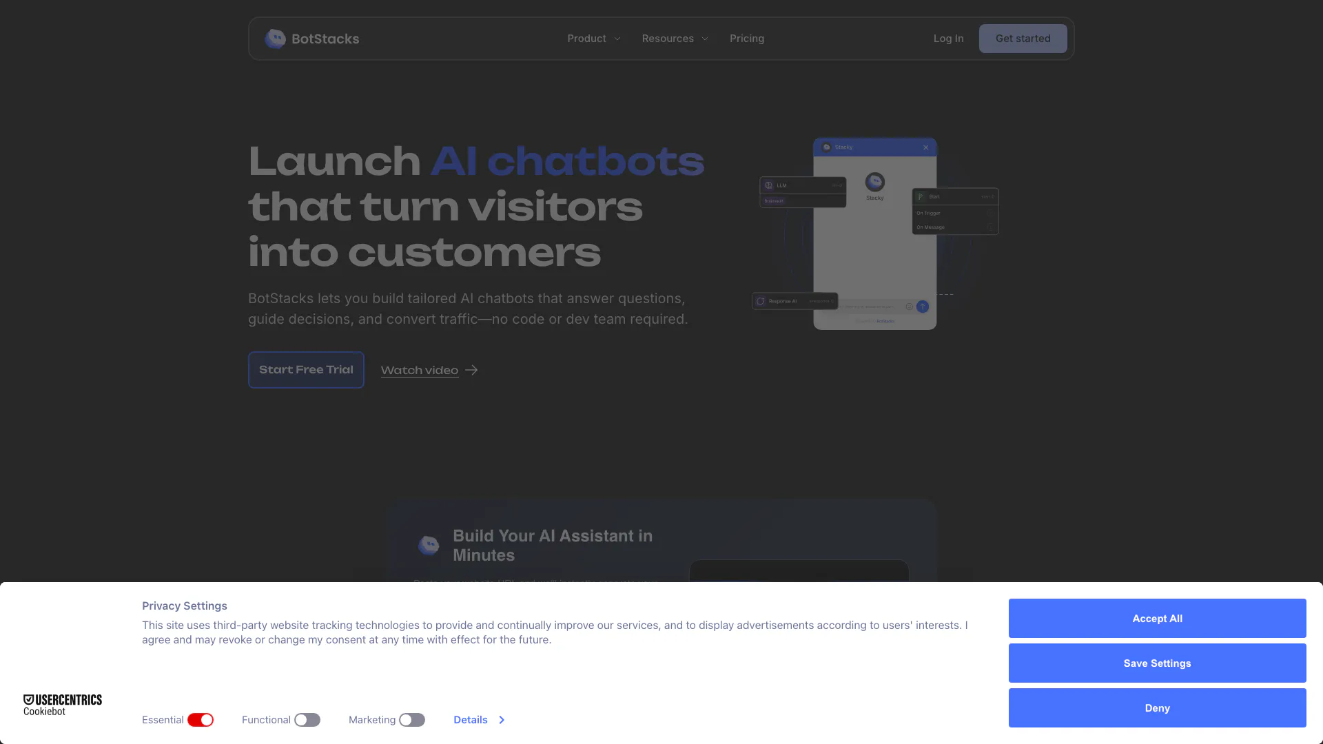 - Soluções personalizadas para várias indústrias: O BotStacks fornece chatbots de IA personalizáveis adaptados para diferentes indústrias, como comércio eletrônico, viagens e educação, melhorando a experiência do usuário.