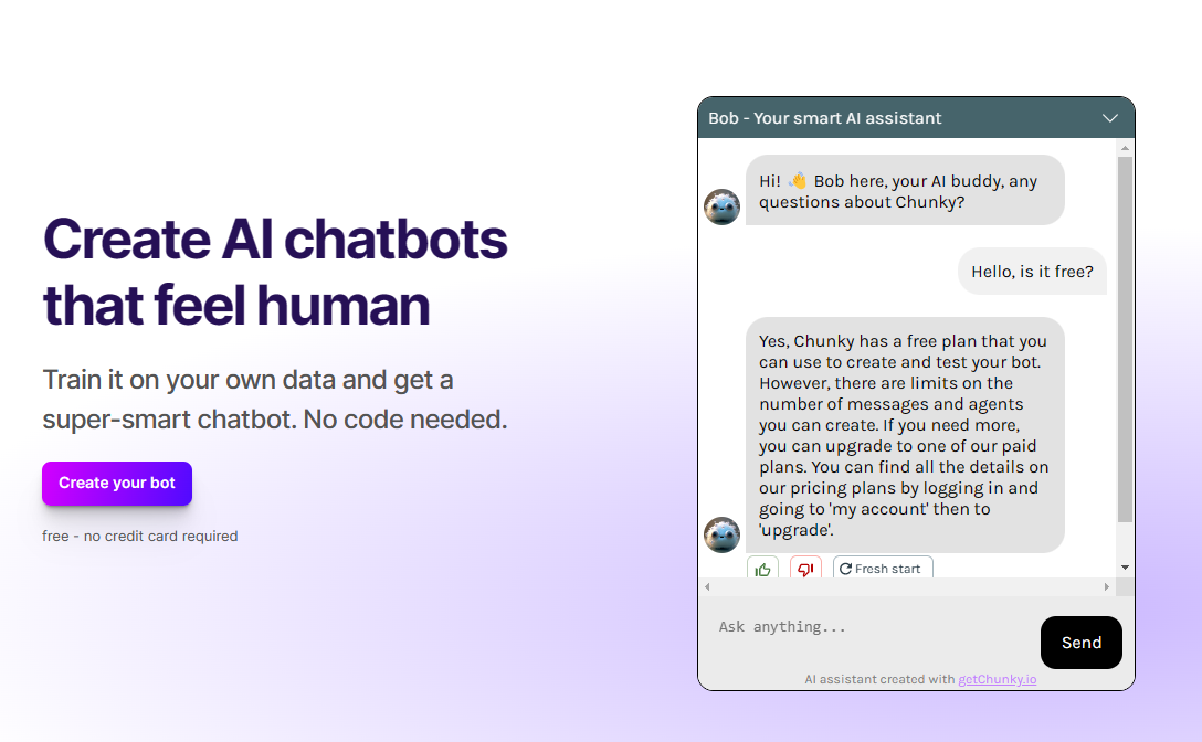 - Interface Amigável: Chunky é projetado para facilidade de uso, permitindo a criação rápida de chatbots.