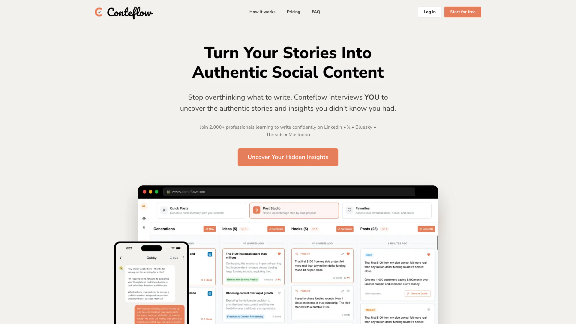 - Criação de Conteúdo Autêntico: A Conteflow usa entrevistas para extrair histórias e insights pessoais, garantindo que o conteúdo seja genuíno e reflita a voz do usuário.