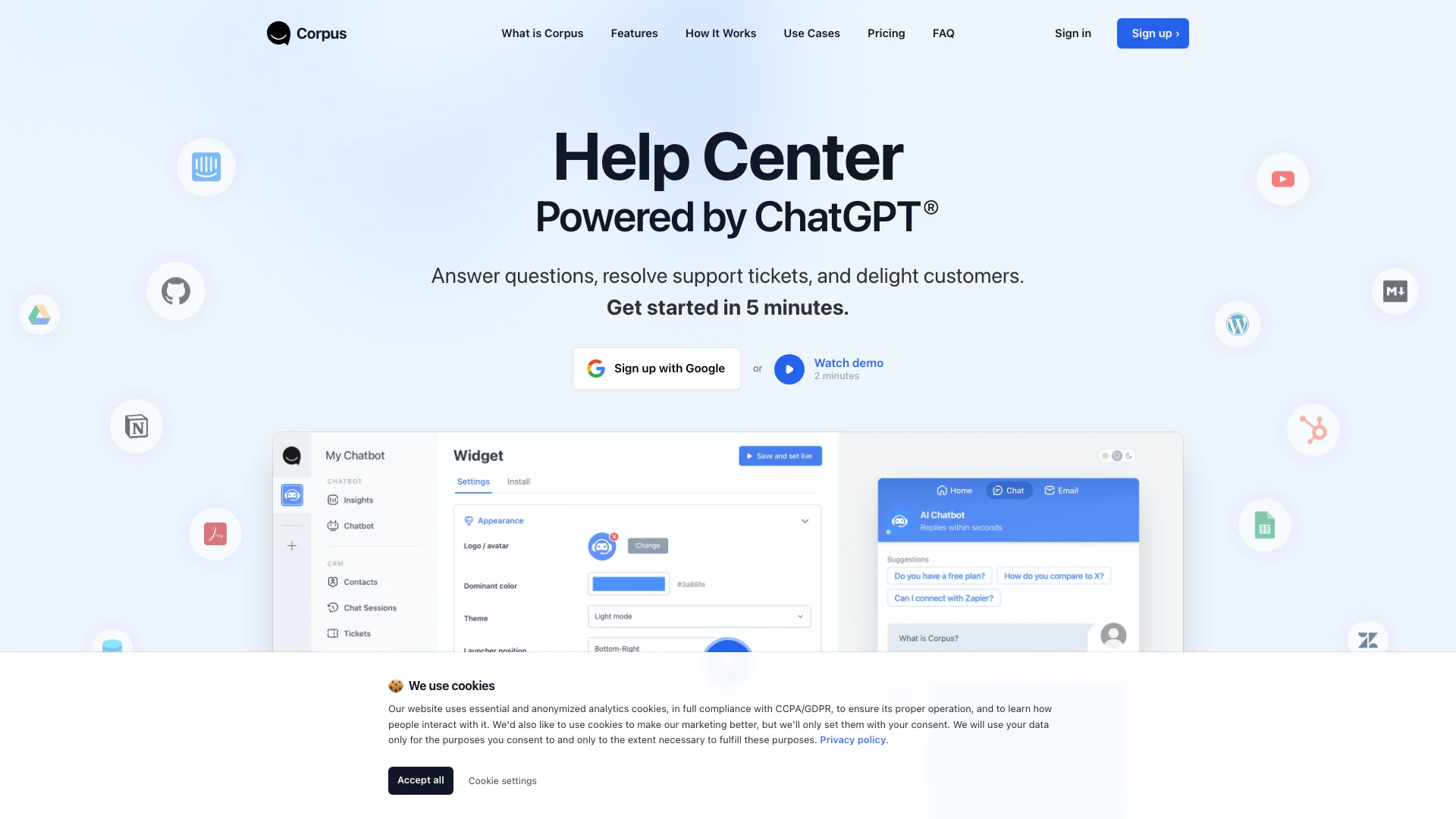 - Integração com Várias Plataformas: O Corpus se integra perfeitamente a várias plataformas como Google Drive, Zendesk e Notion, permitindo fácil coleta e gerenciamento de dados.
