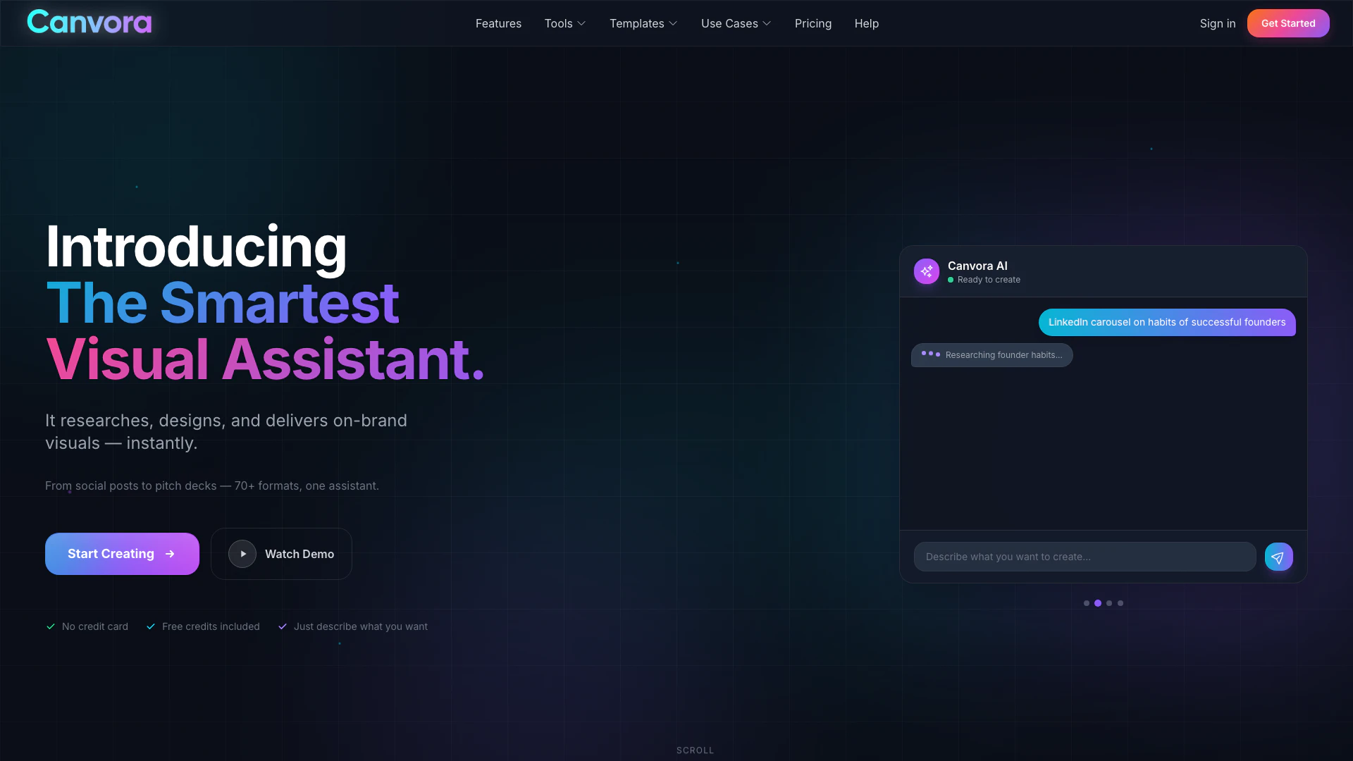 Créditos gratuitos para começar. Todos os 70+ formatos visuais, resolução 2K, com marca d'água.